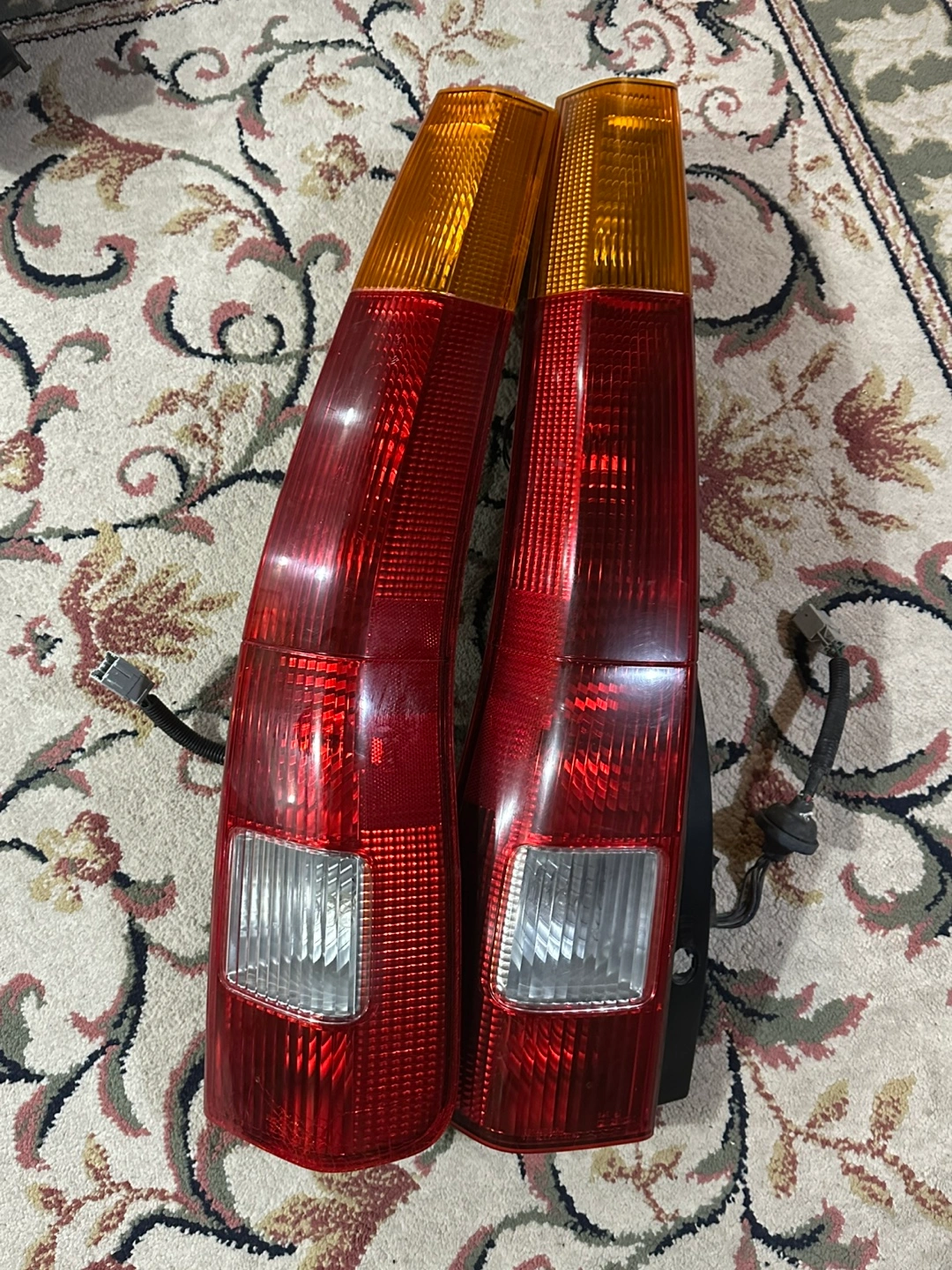 Used Honda CRV tail lights. Red and amber lenses. Wiring harnesses included. Sold as a pair.