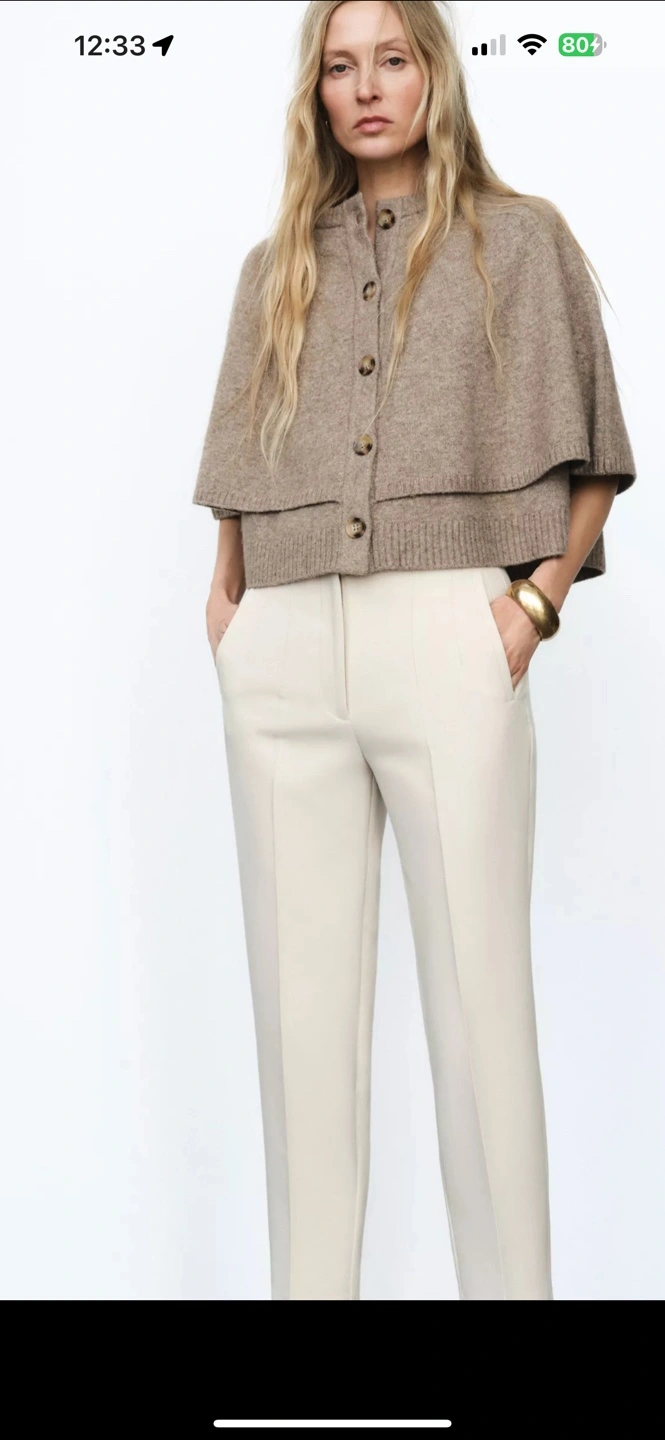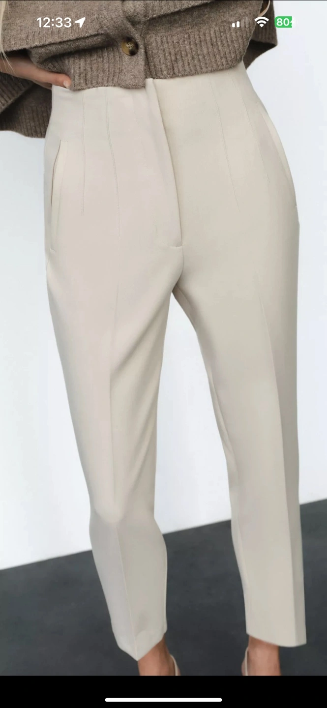 Two (2) pairs of high-waisted cropped pants. Cream and tan/taupe colored. Flat front. Pleats at front. Side pockets. Excellent condition. Brand new. Worn once. $25 each. $40 for both.