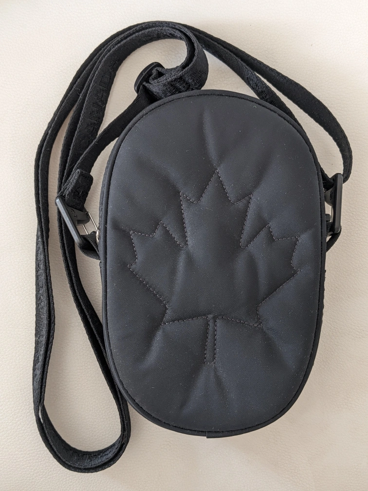 • Main zippered compartment fits your phone • Slip pockets inside and on the back help keep you organized • Removable, adjustable cross-body strap • Take me with you—fabric sleeve on the back can be used to attach to your favourite belt or belt bag • Dimensions: 12cm x 3.5cm x 19cm (4.7" x 1.4" x 7.5")