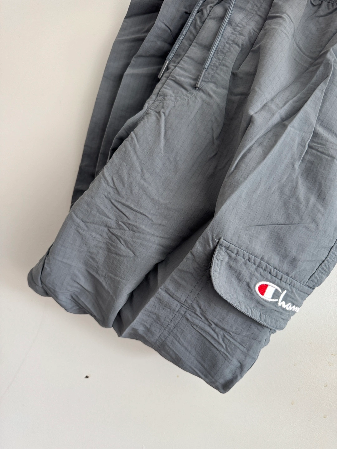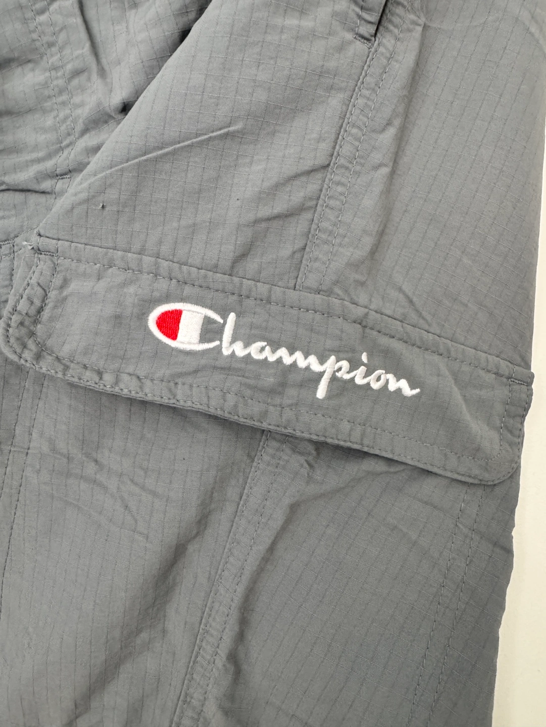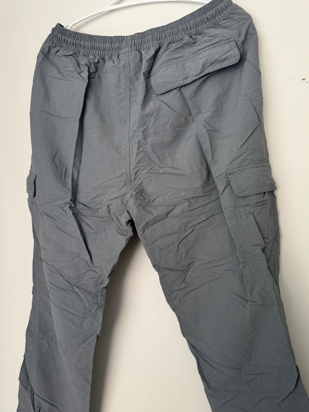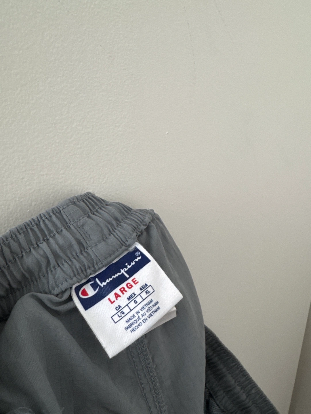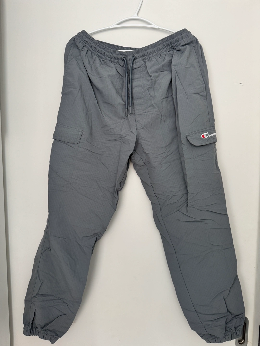 Grey/Blue Champion cargo pants. Size large. Elastic waistband with drawstring. Multiple pockets. Meet up near College Station or Roncesvalles (flexible)