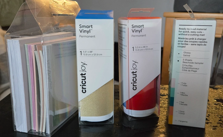 Cricut Joy Smart Vinyl sheets, cards & envelopes. Gold and red vinyl, and beachside sampler pack. Mix of new and barely used.