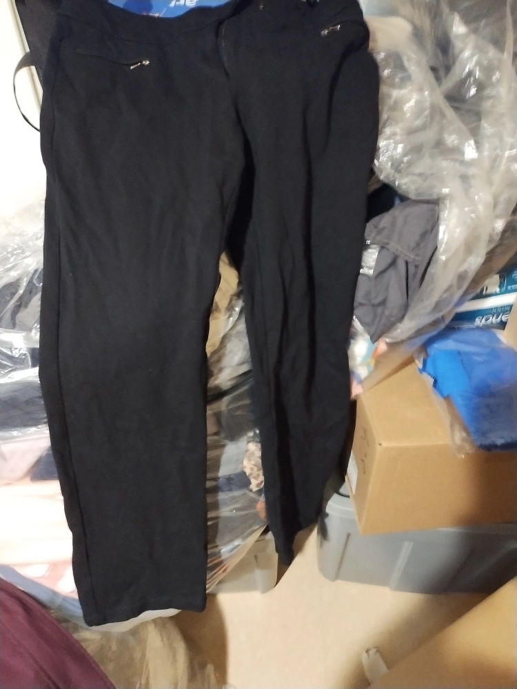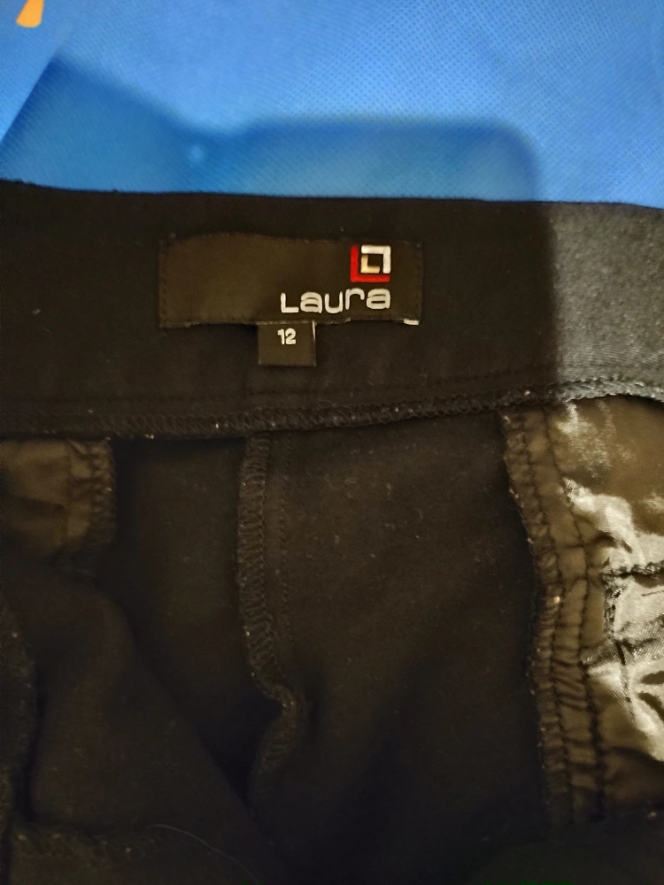 Women's black pants. Size 12. Straight leg. Zipper and hook closure. Two pockets. Good condition.