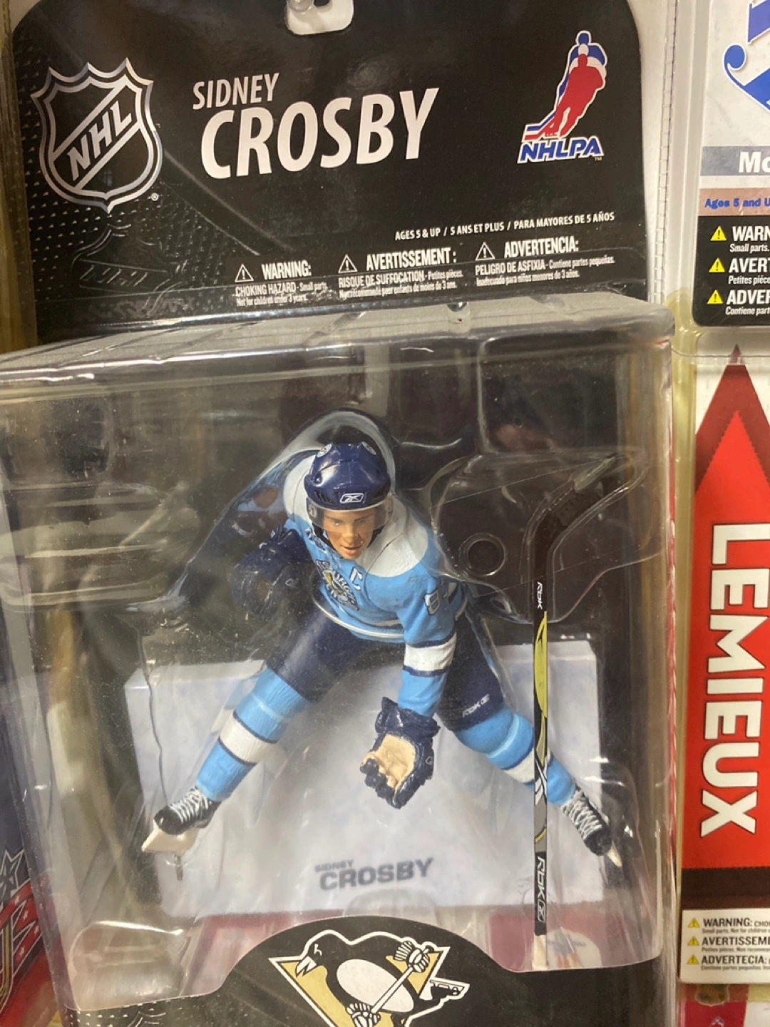 Collectible Sidney Crosby figure. Includes hockey stick. NHLPA licensed. $25