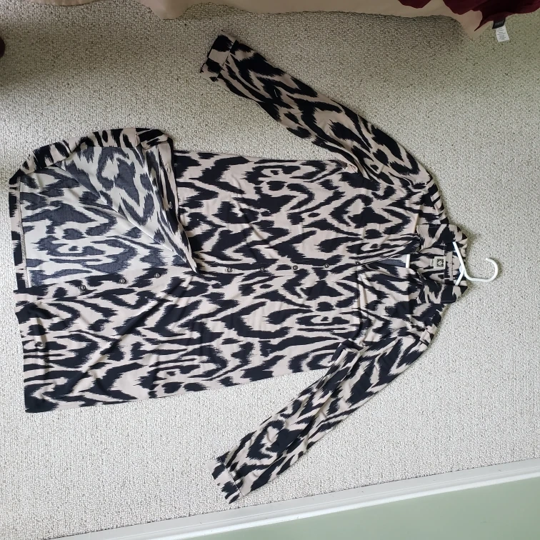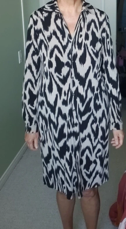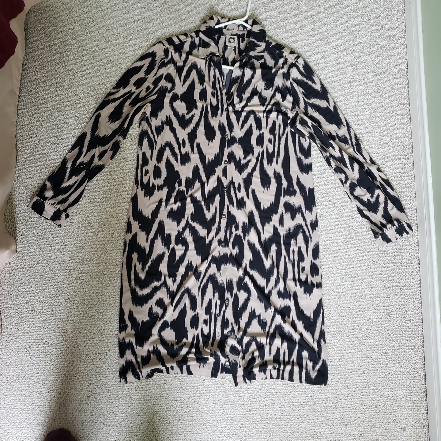 Trendy Black and beige abstract print shirt dress. Long sleeves. Button -down closure. Stretchable fabric 95% polyester, 5% elastan. Anne Kline name brand. Make an offer. pick up Sheppard/Bathurst From no smoke/pets home