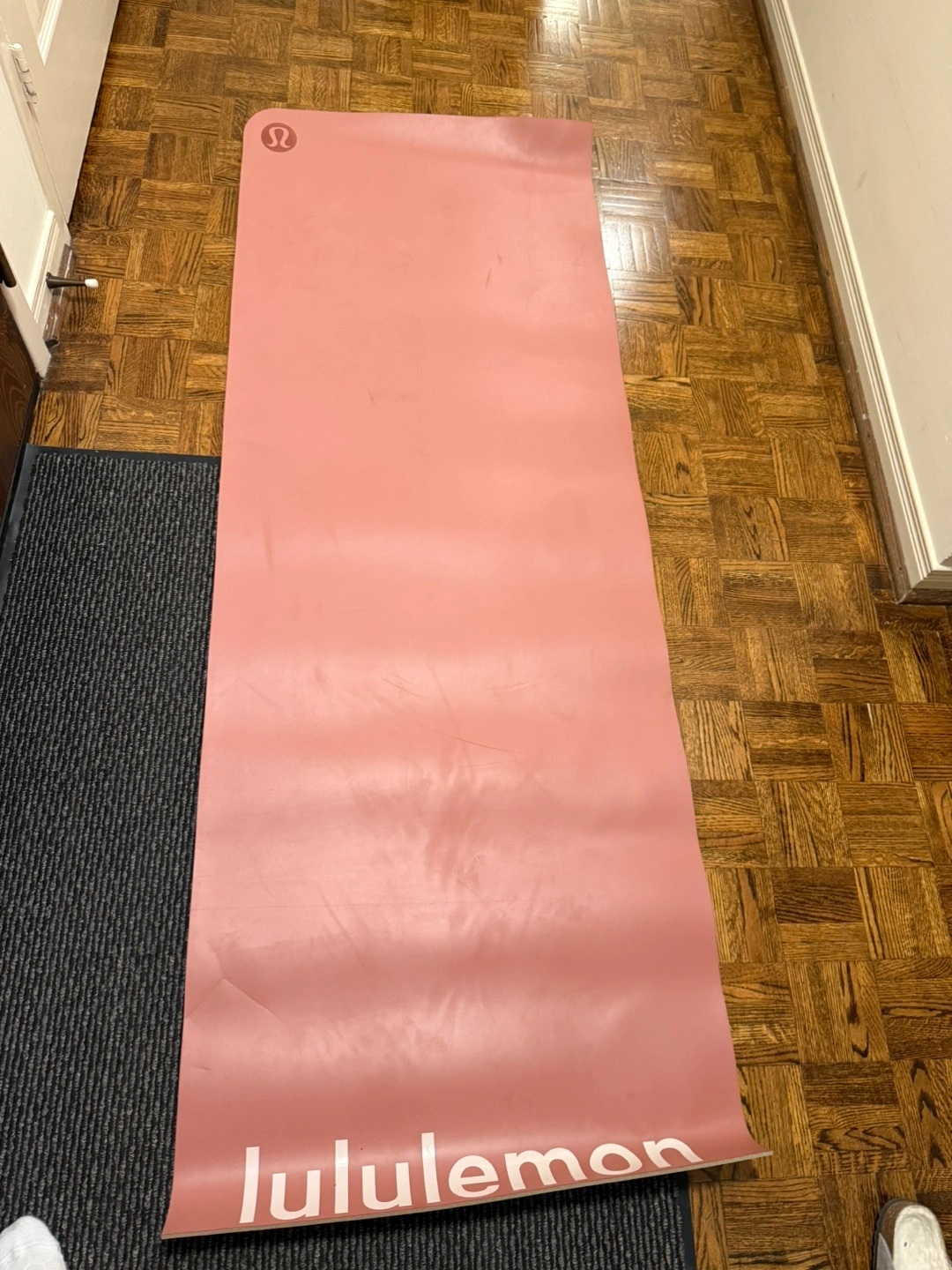 lululemon pink yoga mat. some light stains that can be cleaned, otherwise in great condition