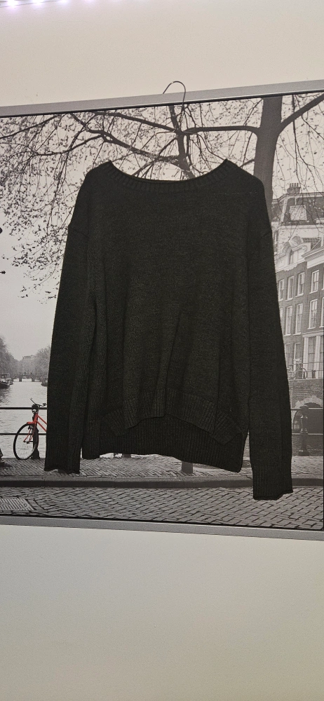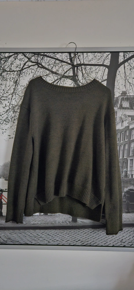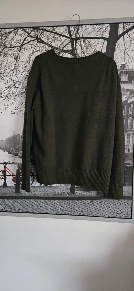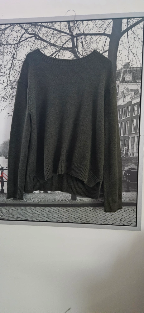 Women's dark green crew neck sweater. Long sleeves, relaxed fit. Slightly cropped length.