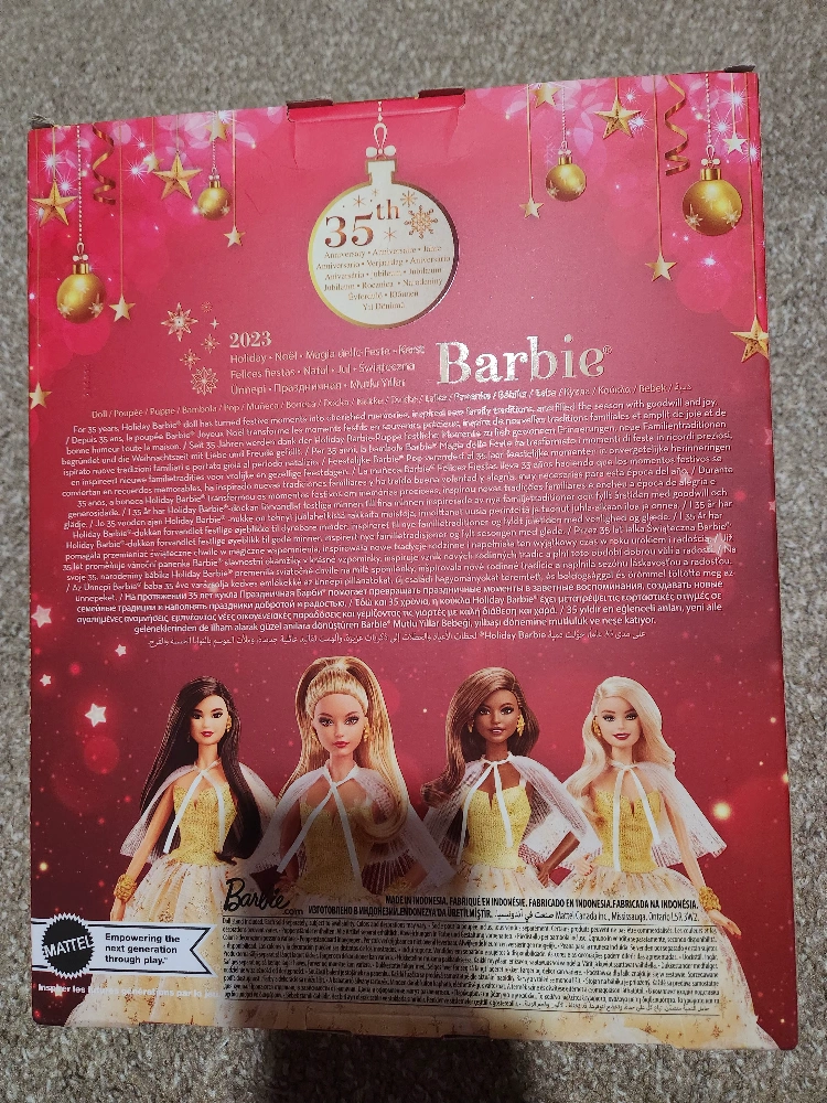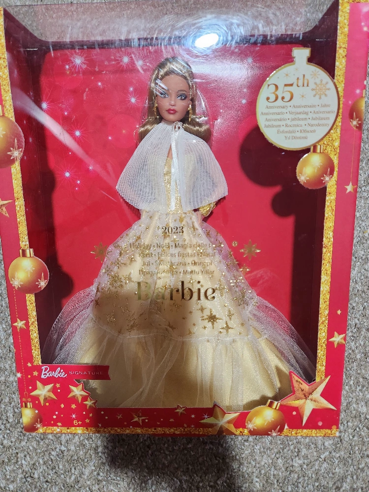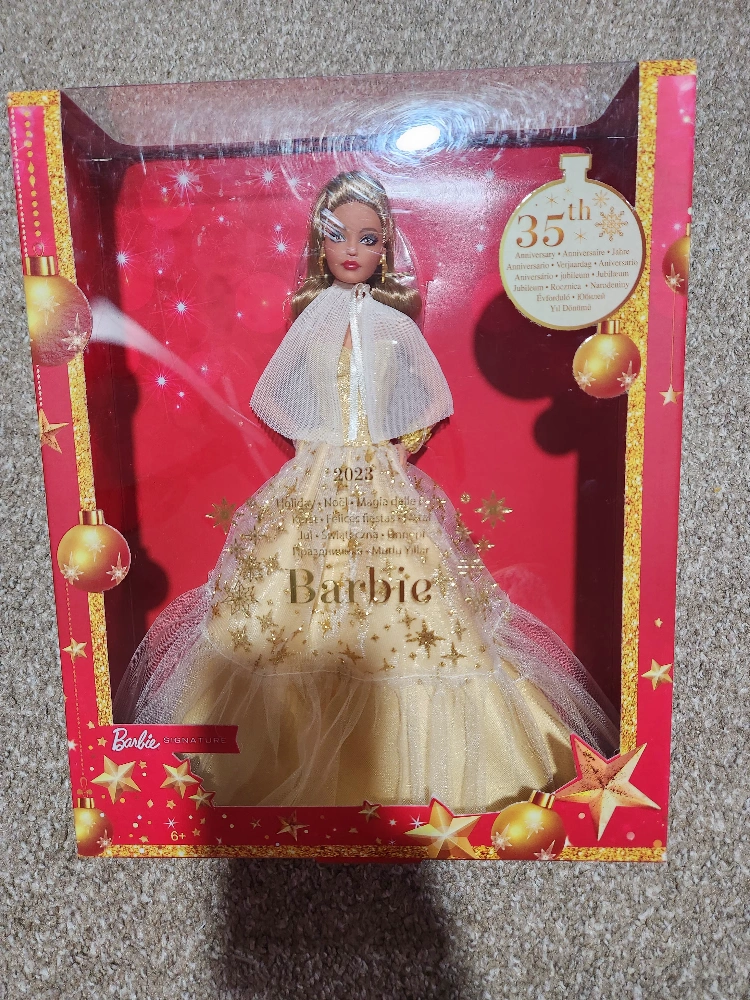 New in box. Collectible. 2023 Holiday Barbie 35th-anniversary edition.