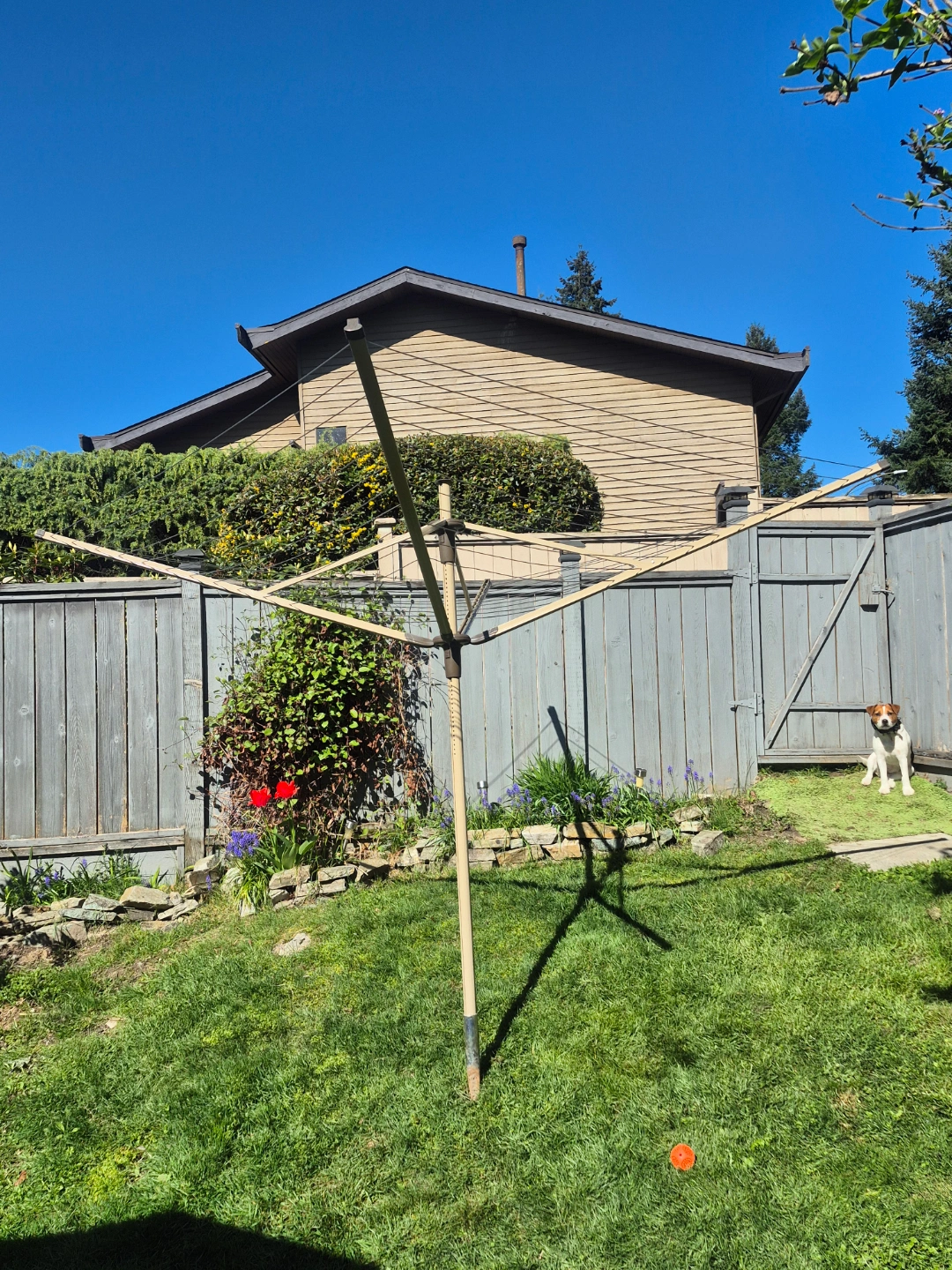 Brand new. same as in the picture. Large capacity outdoor clothes dryer. Sahara beige colour. Great for drying clothes outside. Brand new outdoor cloth line rack similar to this but bigger: https://www.homedepot.ca/en/home/categories/decor/storage-and-organization/laundry-storage/drying-racks/f/strata/8wk-vjd