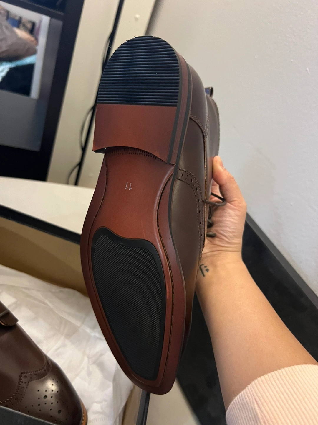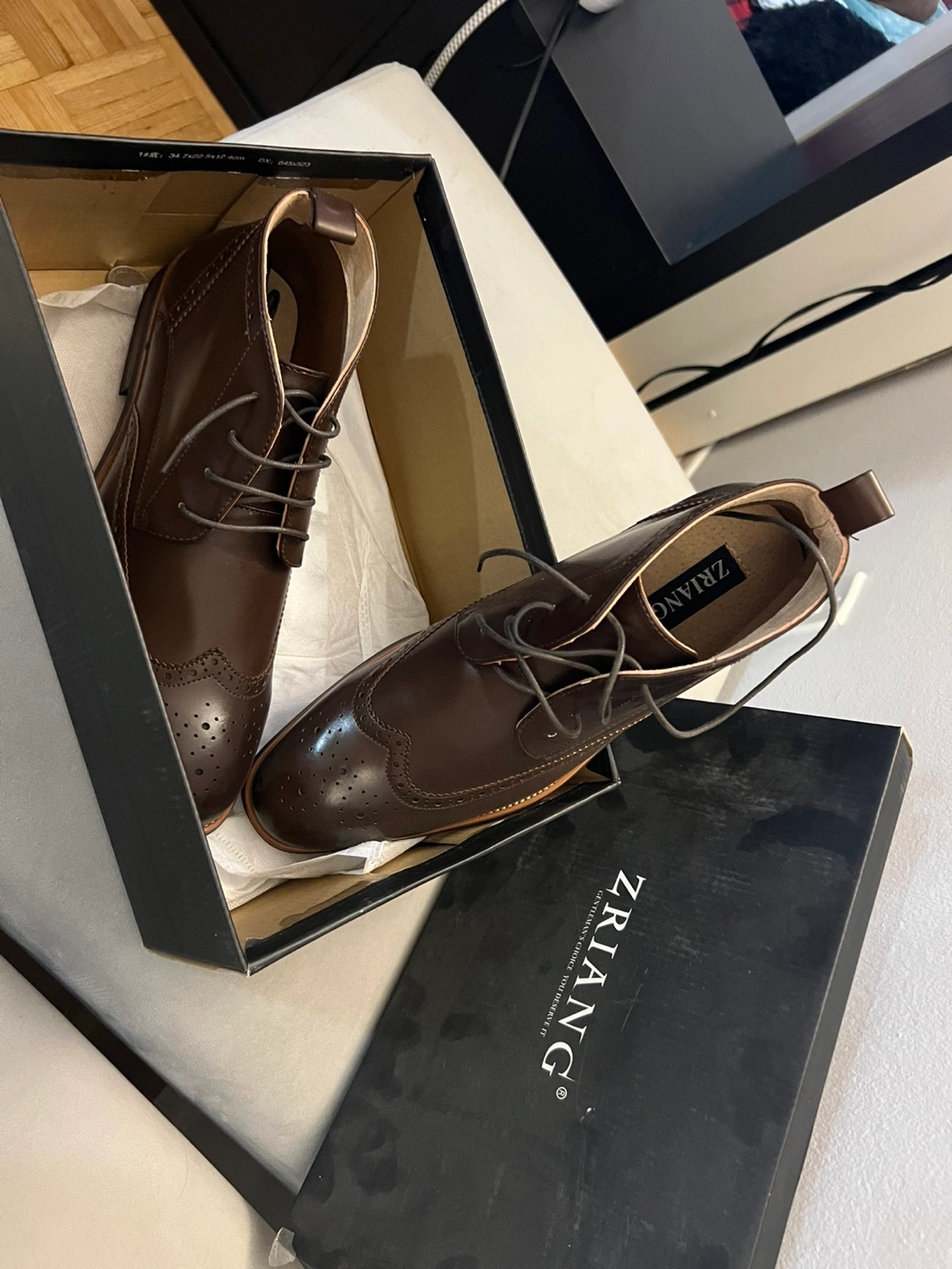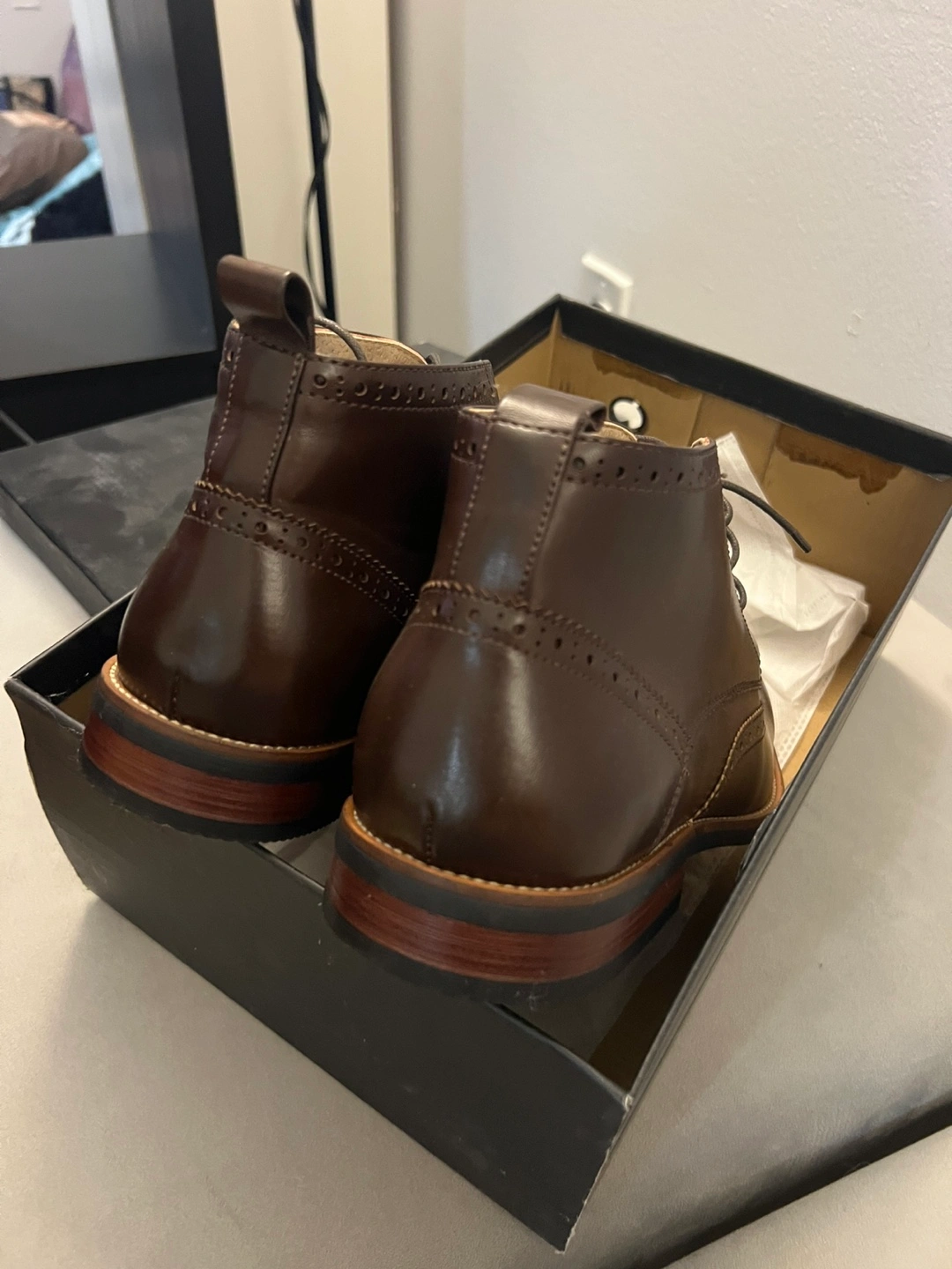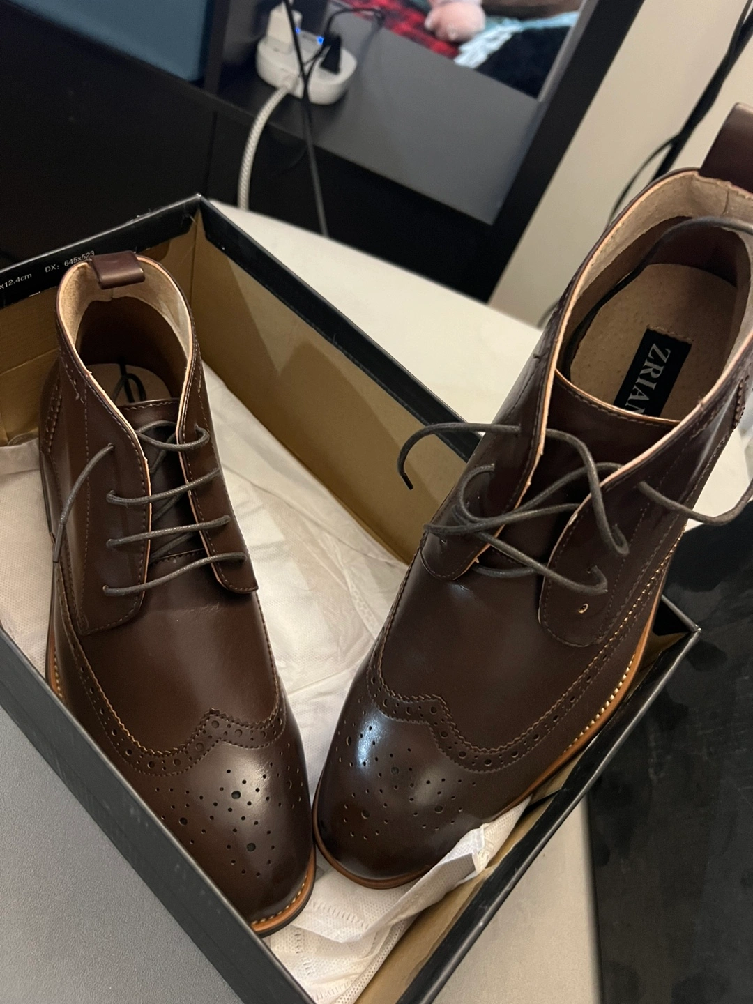Brown leather ankle boots. Wingtip design. Lace-up closure. New in box. Size 11. Pick up only Located near Yonge and Eglinton