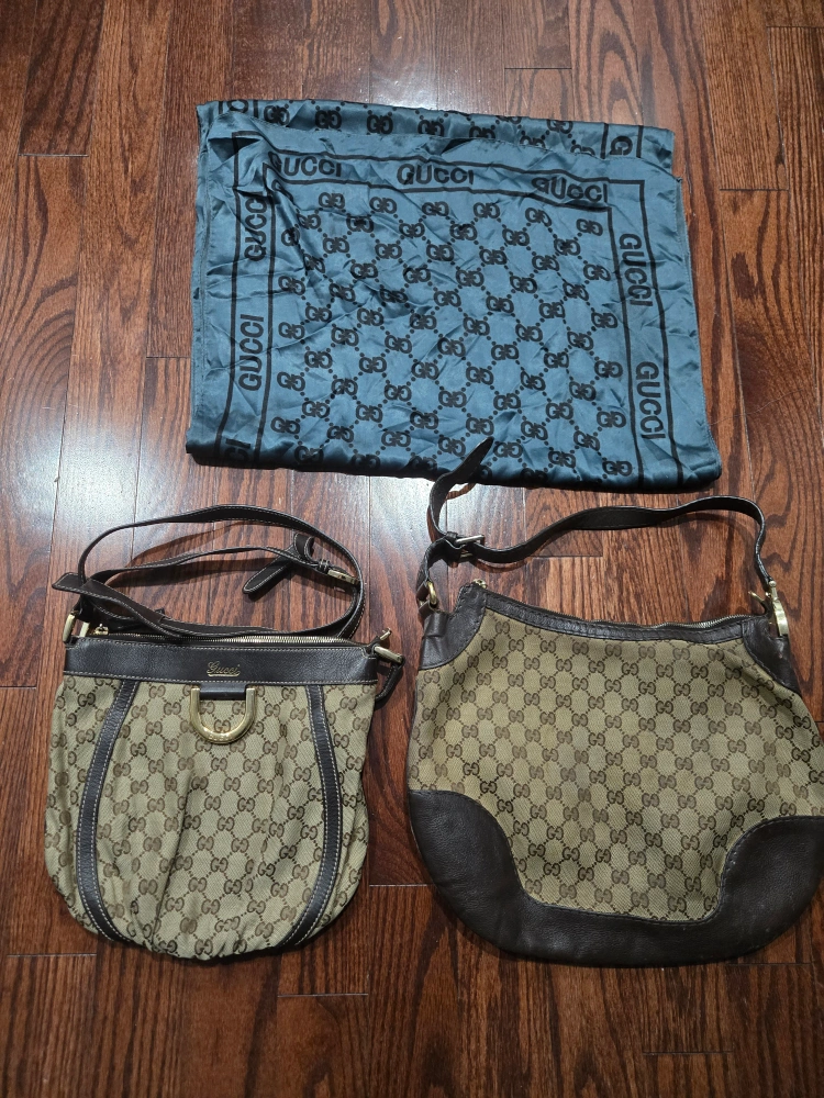 Selling 2 Gucci handbags and 1 silk scarf. Condition is 5/10. Meet up in Scarborough