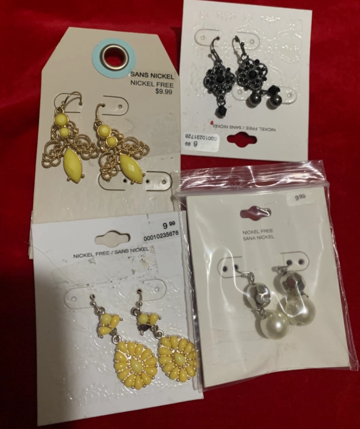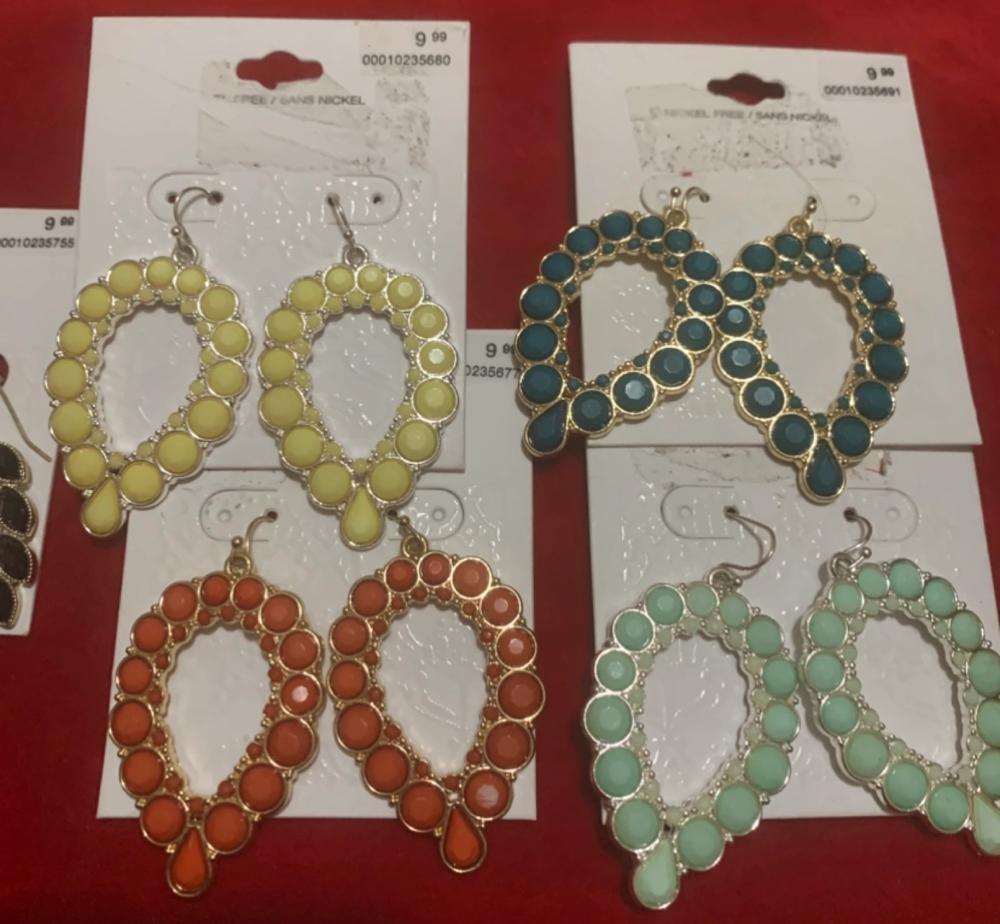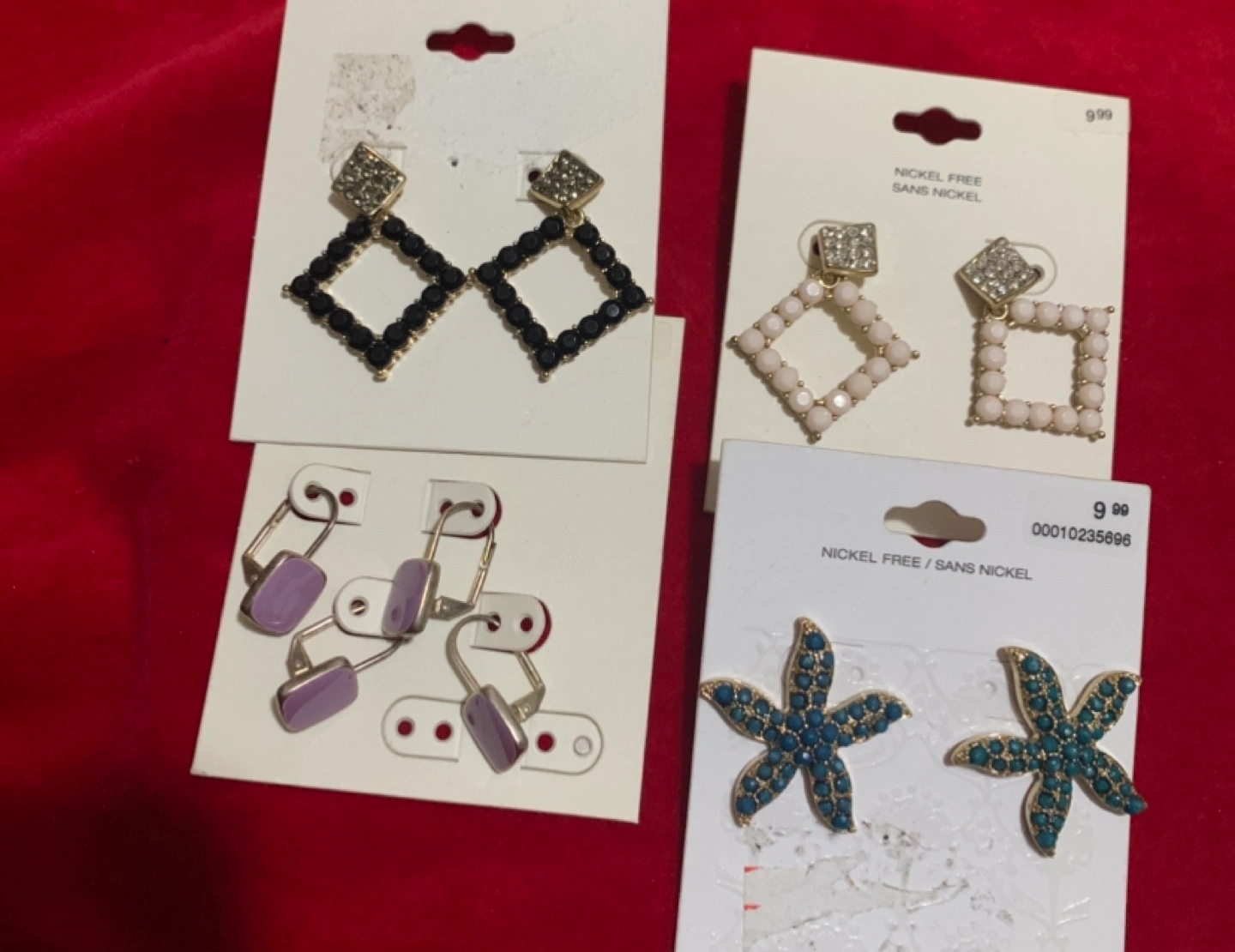 Assortment of 10 pairs of earrings. Various colours and styles. Nickel-free. Great for adding to your jewellery collection. Brand new 4 for $5
