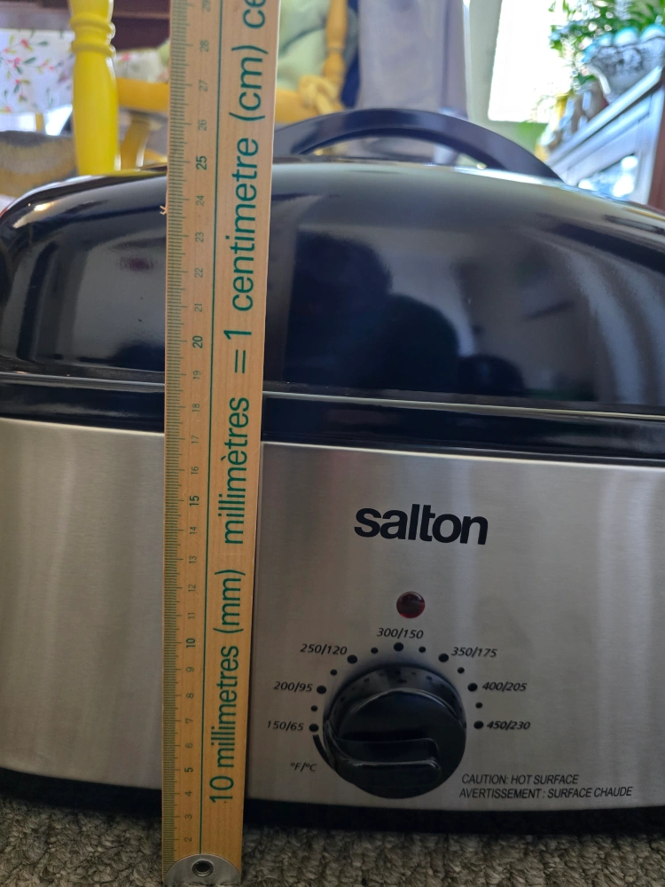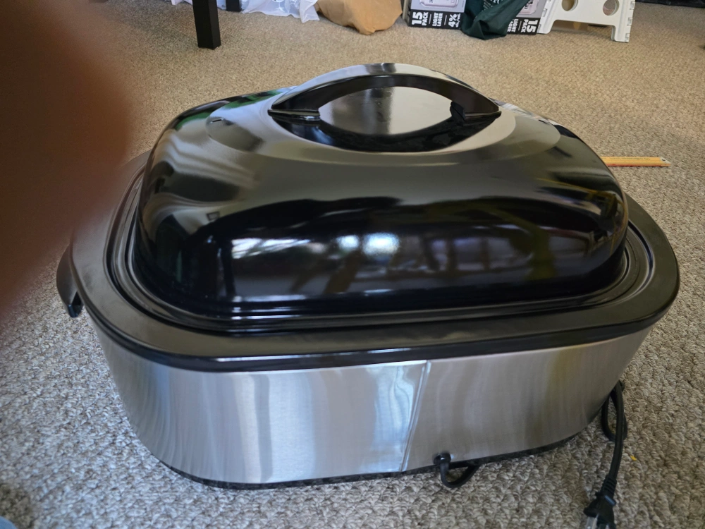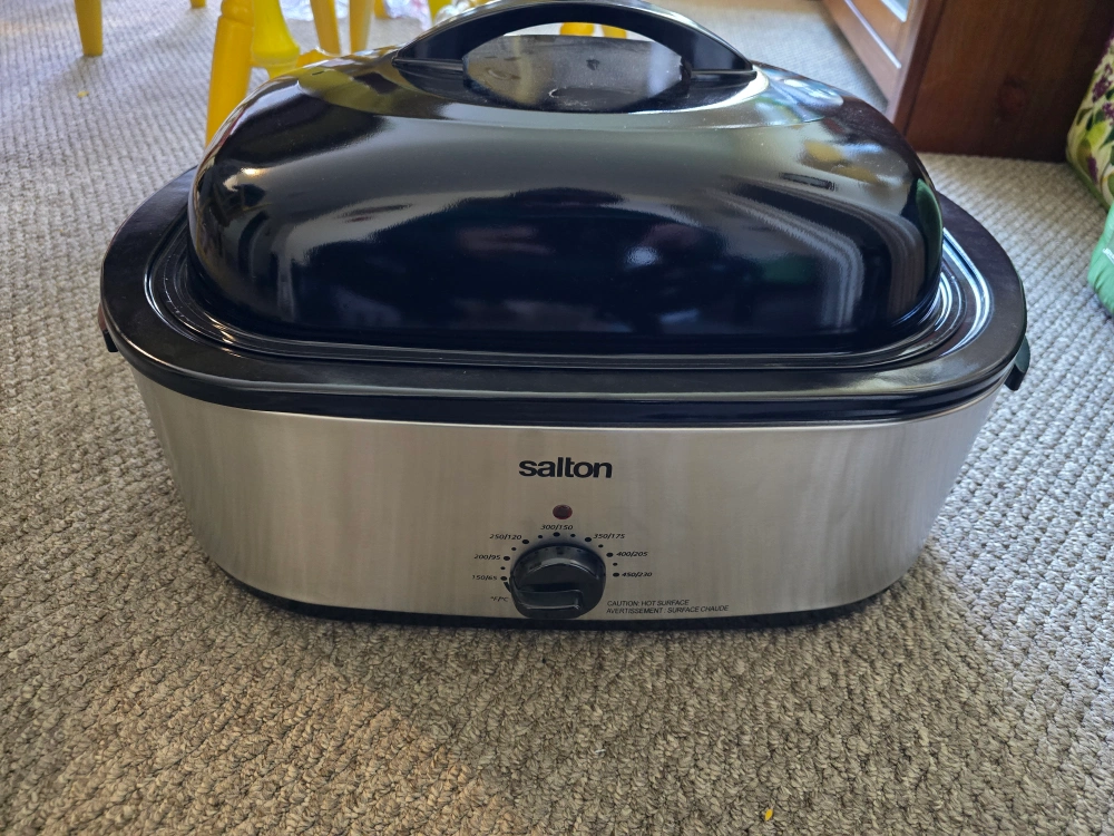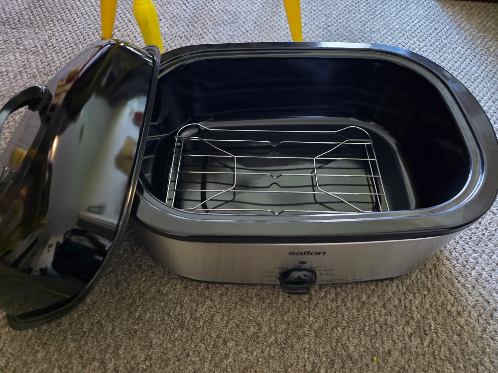 Large capacity roaster oven. Stainless steel and black. Includes rack. Good condition. brand new with box. never used. moving sale