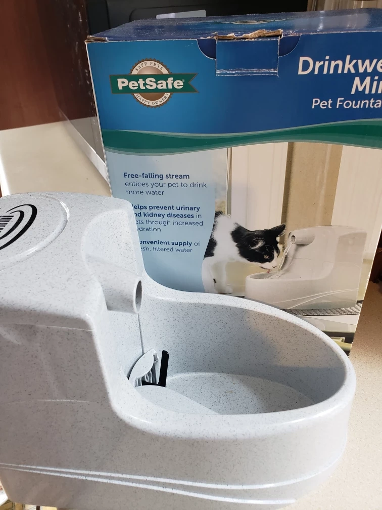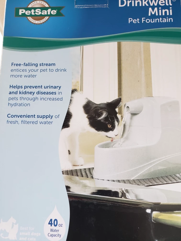 New water drinking fountain for your pets. Quite, space saving, nice color. Just fill it out with water, plug it in and see your pets enjoy drinking water.