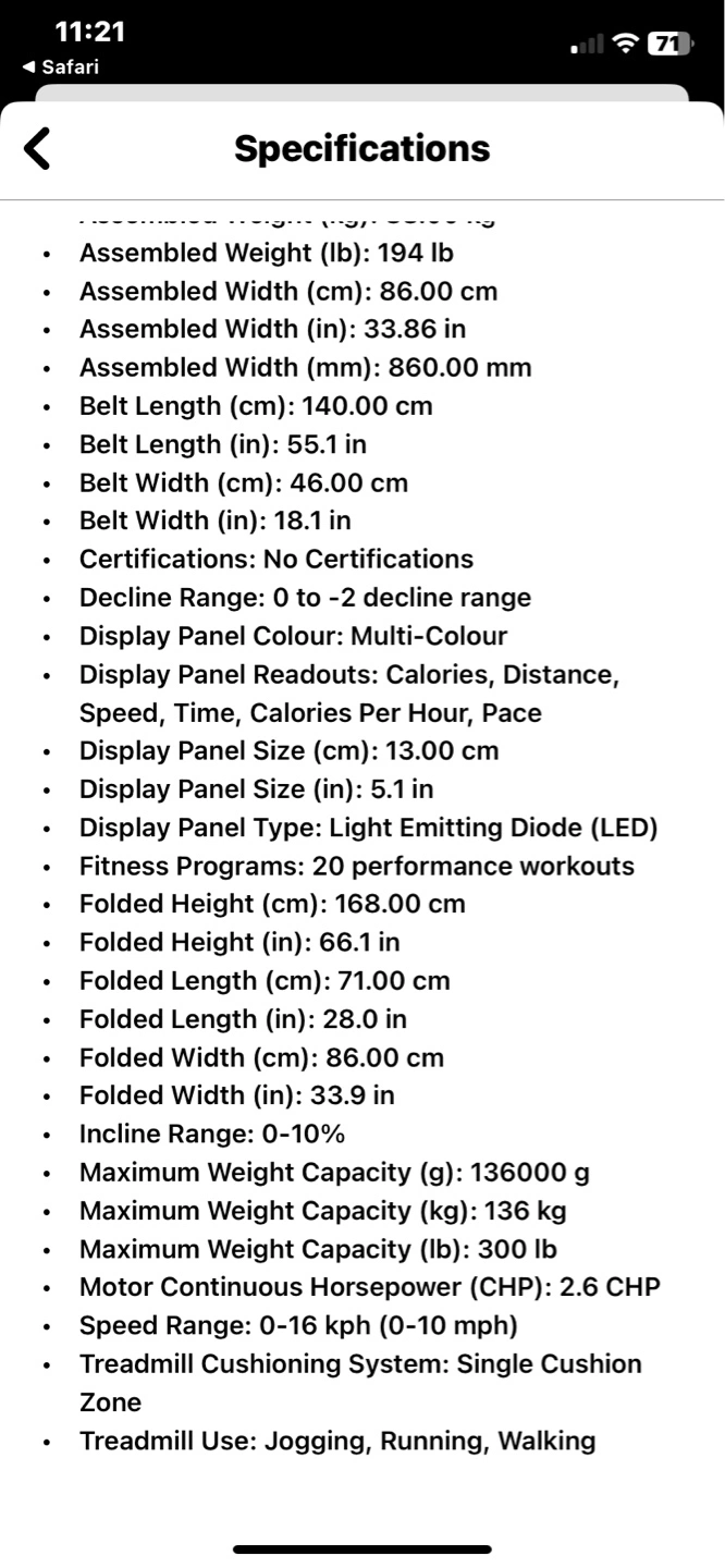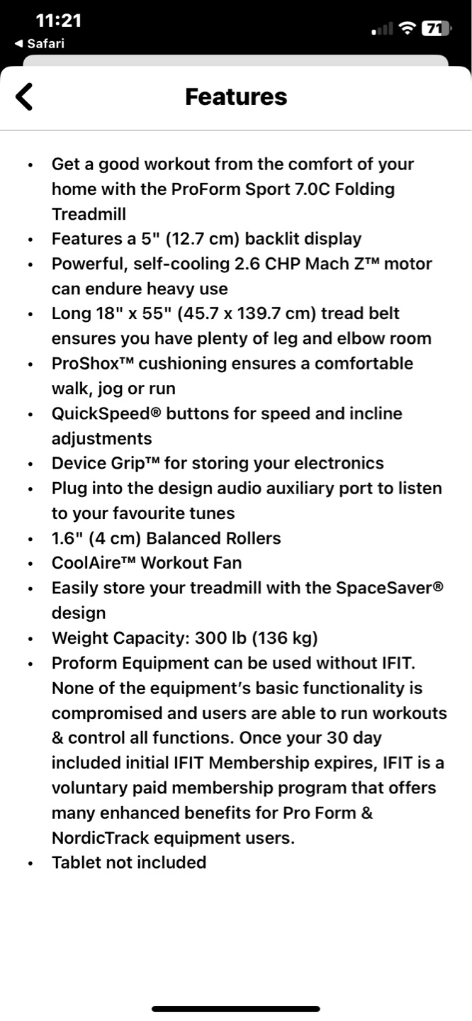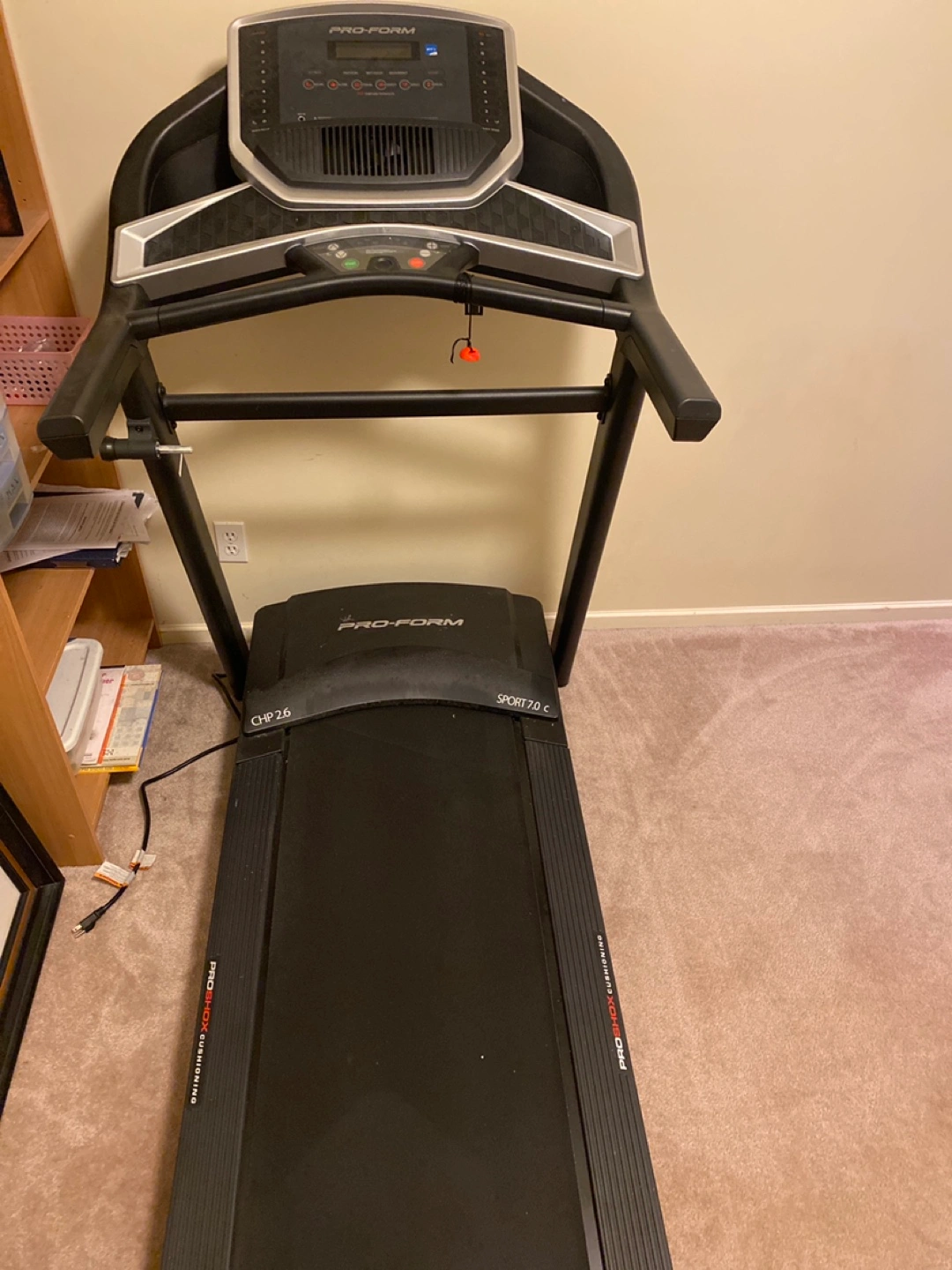 Regain the best physical form of your life with ProForm Sport 7.0 C treadmill! Good condition. Features a CHP 2.6 motor. Includes console with various workout programs. Can deliver to your home if there is help on your end.