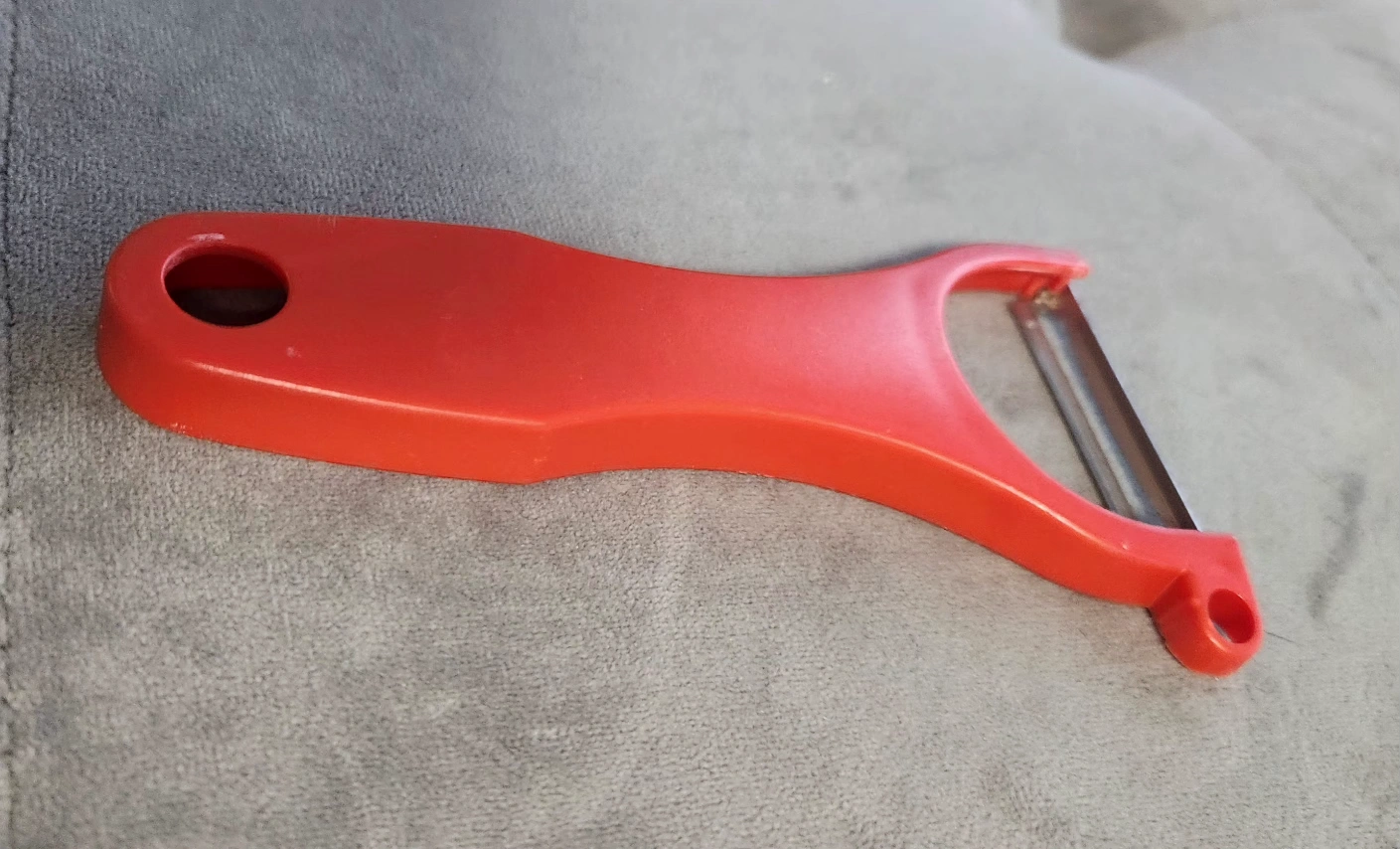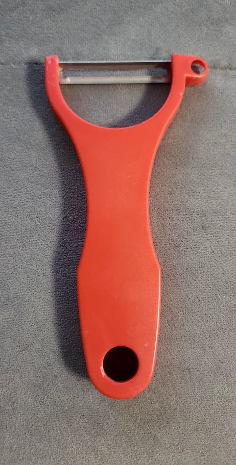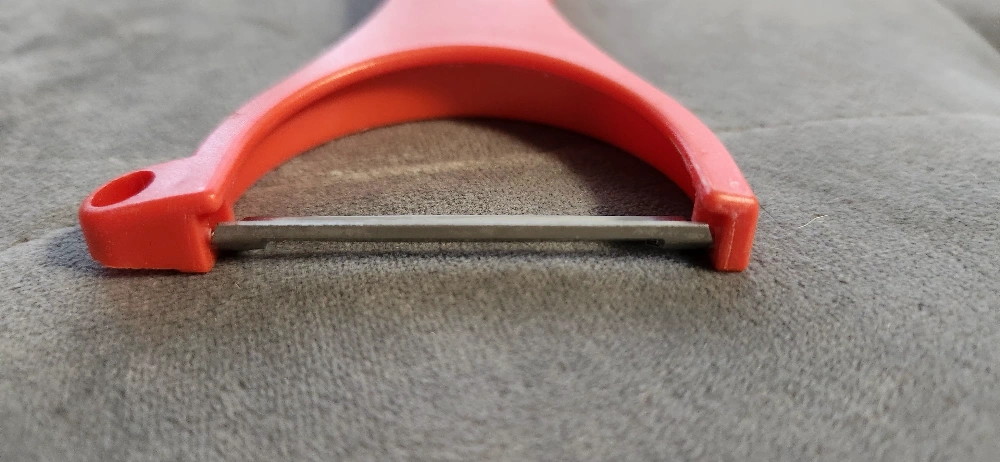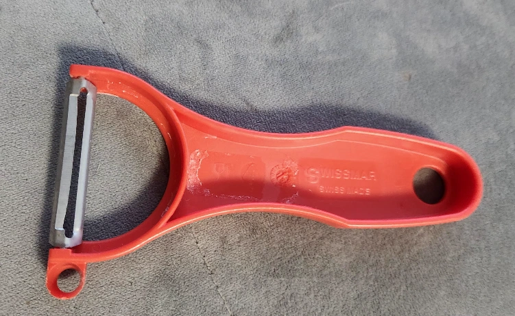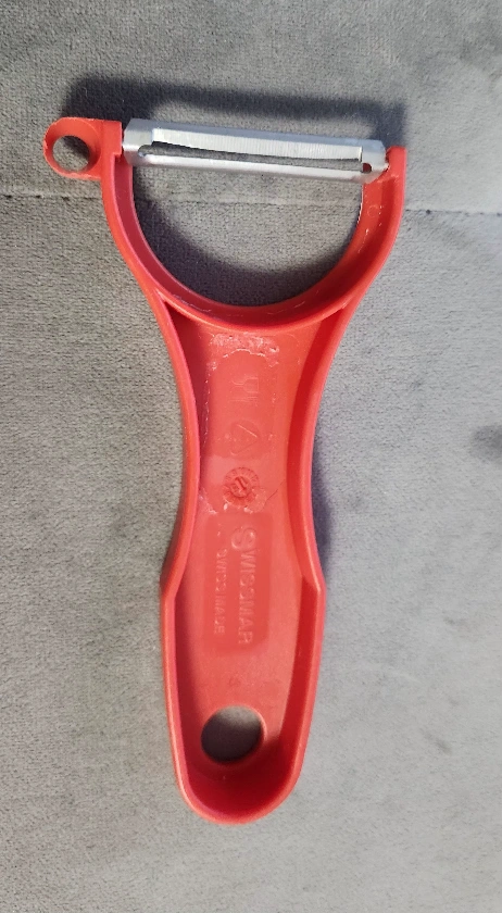Swissmar Y Peeler cuts peeling time in half with its wide, serrated, acid etched stainless-steel blades. The ergonimic non- slip handle works in the right or left hand and prevents hand fatigue with it's light and comfortably sized grip. Quickly remove imperfections with the built in spot cutter. The perfect tool for peeling all fruits and veggies, this peeler provides ultra-sharp performance that all chefs will love. Even better, it is dishwasher safe for easy cleaning. Swiss made.