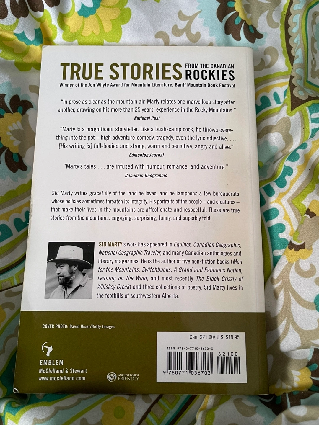 Pre-owned copy of Switchbacks, a collection of non-fiction stories from the Canadian Rockies. Written by Sid Marty, author of Men for the Mountains and The Black Grizzly of Whiskey Creek. Excellent, nearly new condition.