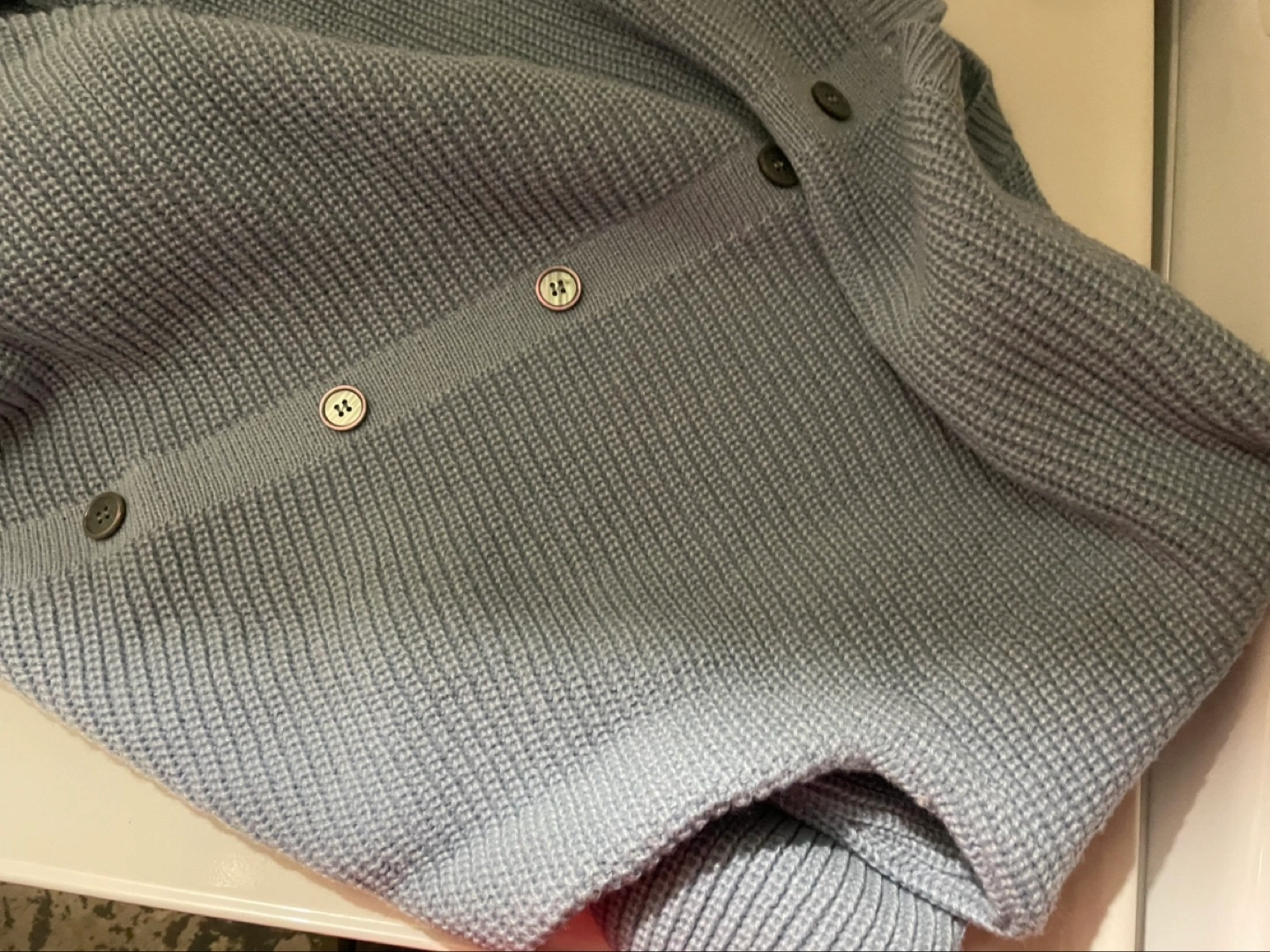 💚Women's blue/grey oversized sweater. 🥕thrifty picks Features a ribbed knit texture and button closure at the back. Long balloon sleeves. Cozy and comfortable. Pick up Victoria park ave nth Lawrence Ave