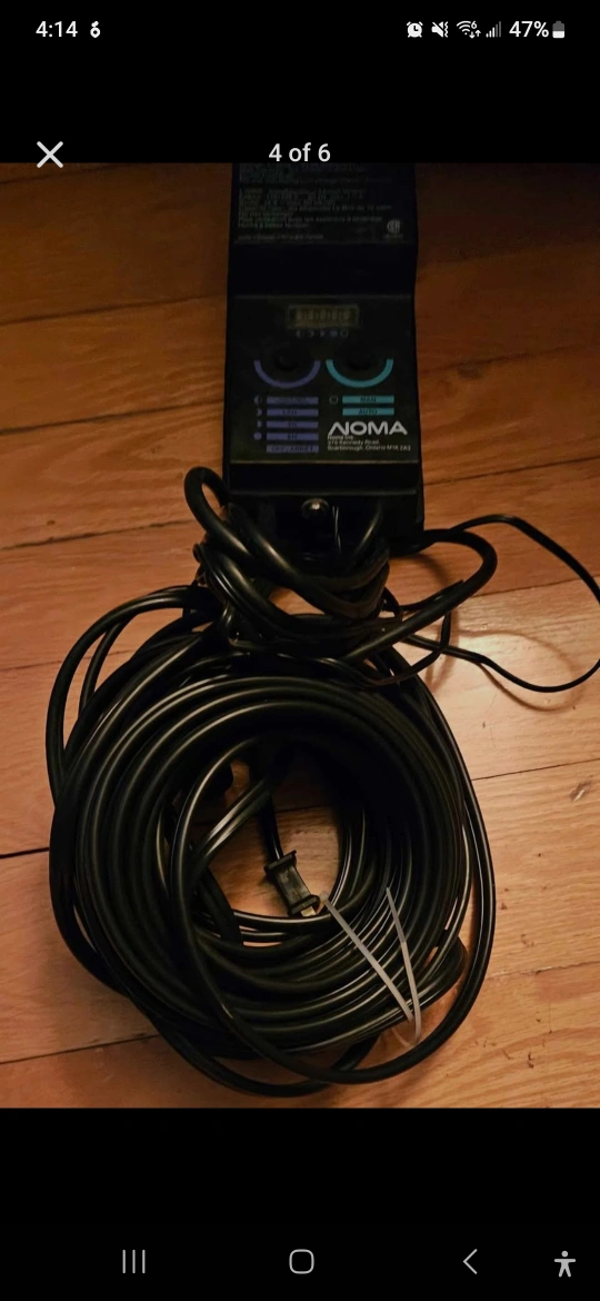 NOMA low voltage garden lighting transformer. Includes timer, various timer settings. Long power cord. Made in Canada.