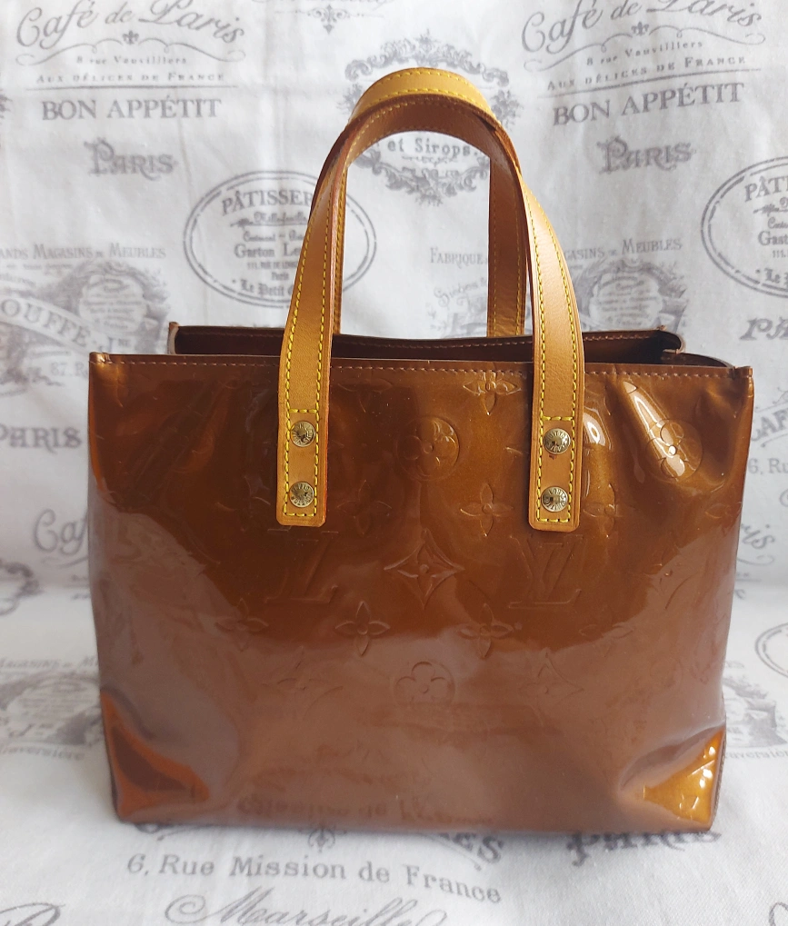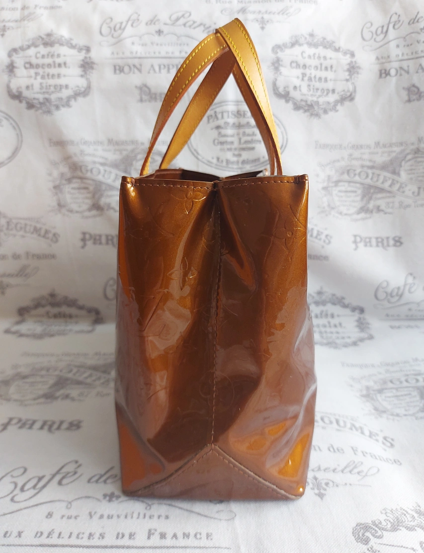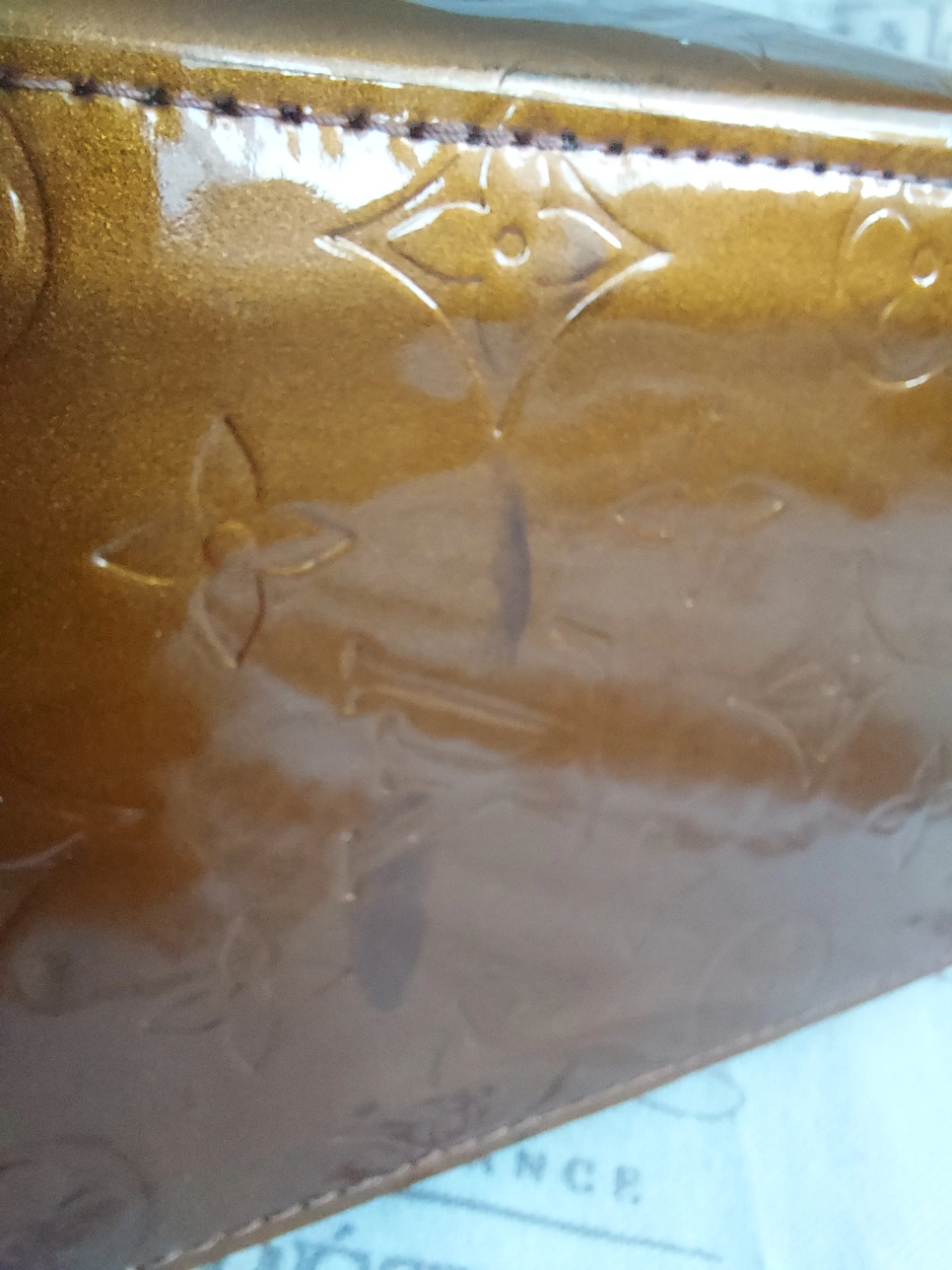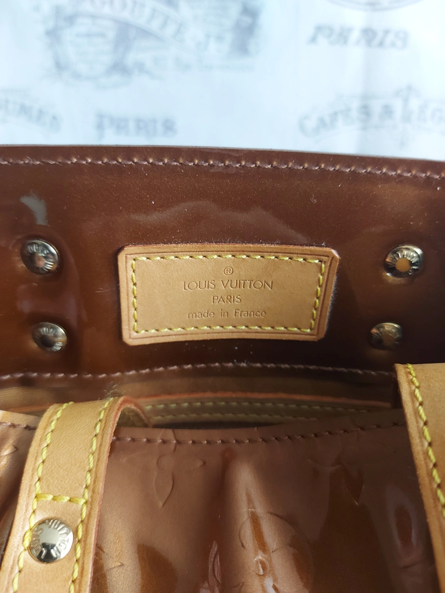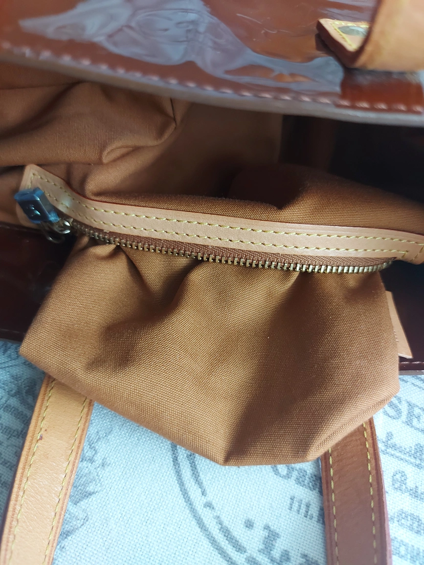 100% Authentic Made in France Date Code - MI0021 Dimensions - 9.0” x 7.0” x 4.0”, handle drop 4.0” In great used condition Vernis Leather - light rubbings in one bottom corner, some stains at the bottom, one tiny nick and scratch Vacheta - Light patina, minor stain Hardwares - gold tone, zipper runs smoothly, zipper pull still with protective sticker Interior- no foul smell, clean interior pocket This beauty had a spa