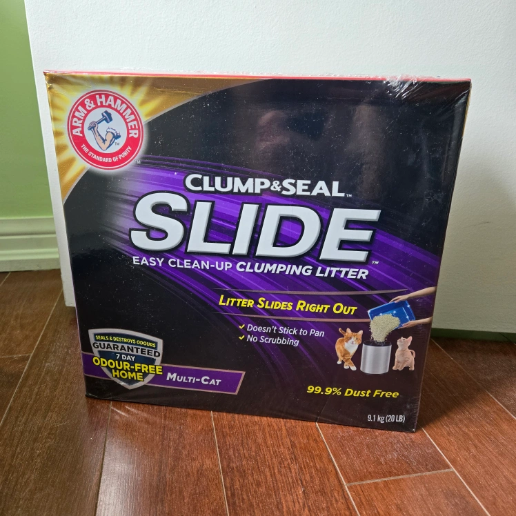 Package is sealed in original wrap. Multi-cat clumping litter. Easy clean-up. Litter slides right out. Doesn't stick to pan. No scrubbing. 99.9% dust free. 9.1 kg (20 lb).