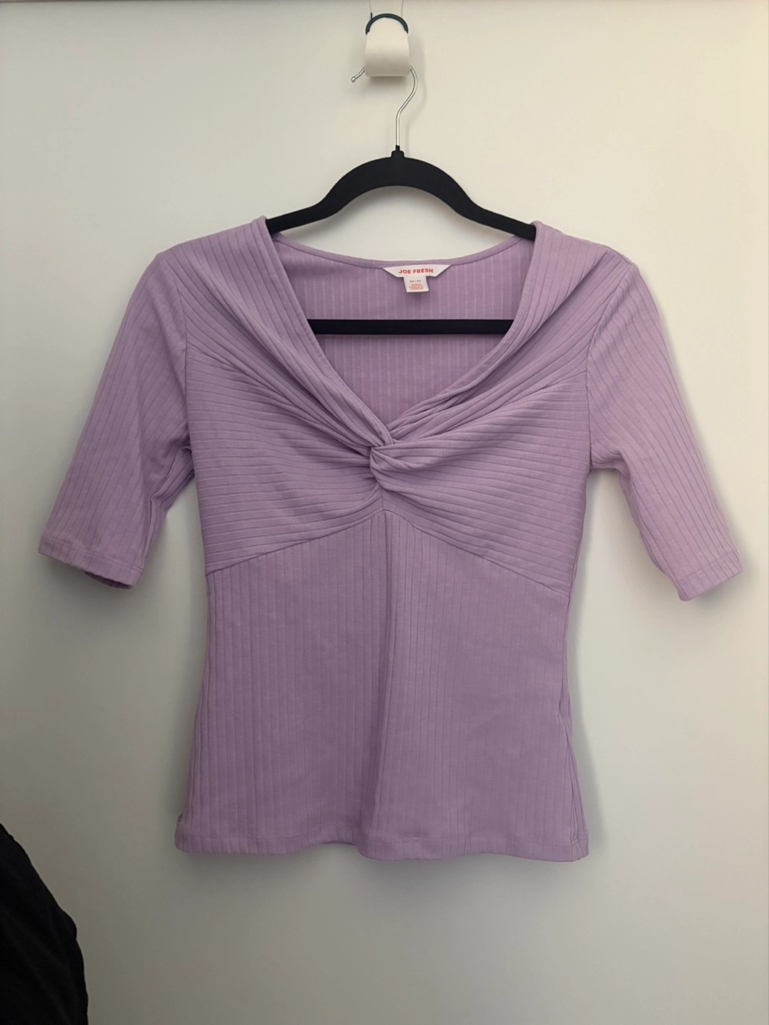 Lavender ribbed knit top. Features a twist detail at the front and short sleeves. XS size but Iβm usually a small and it fit me well. Smoke free home, pick up near major Mackenzie and woodbine
