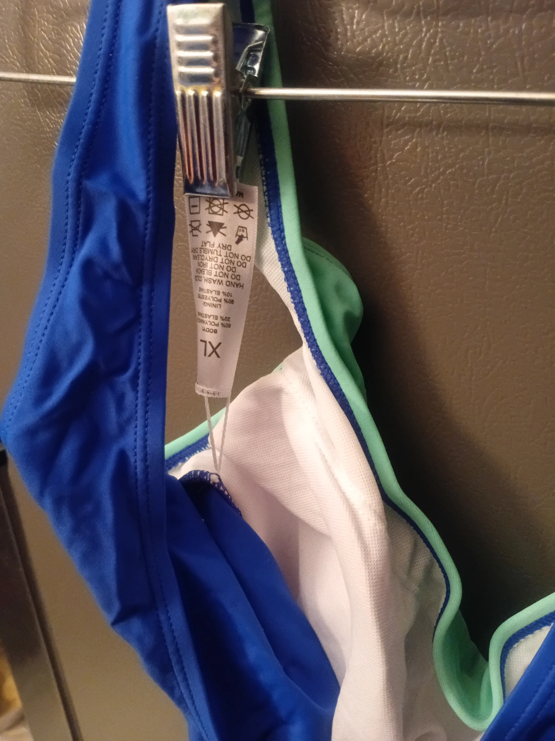 Women's athletic one-piece swimsuit. Features a U-back design and colour-blocked design. X-Large size. Great for swimming and water activities. - see images for details - click image to enlarge - scroll to left to see more images PLEASE "FOLLOW" ME, AS I OFFER A VARIETY OF DIFFERENT ITEMS AT FANTASTIC PRICES! HOPE TO SEE YOU SOON! THANKS FOR YOUR TIME . Exact Cash Please - If you need change please let me know ahead of time so I can get change. BM33 S00774