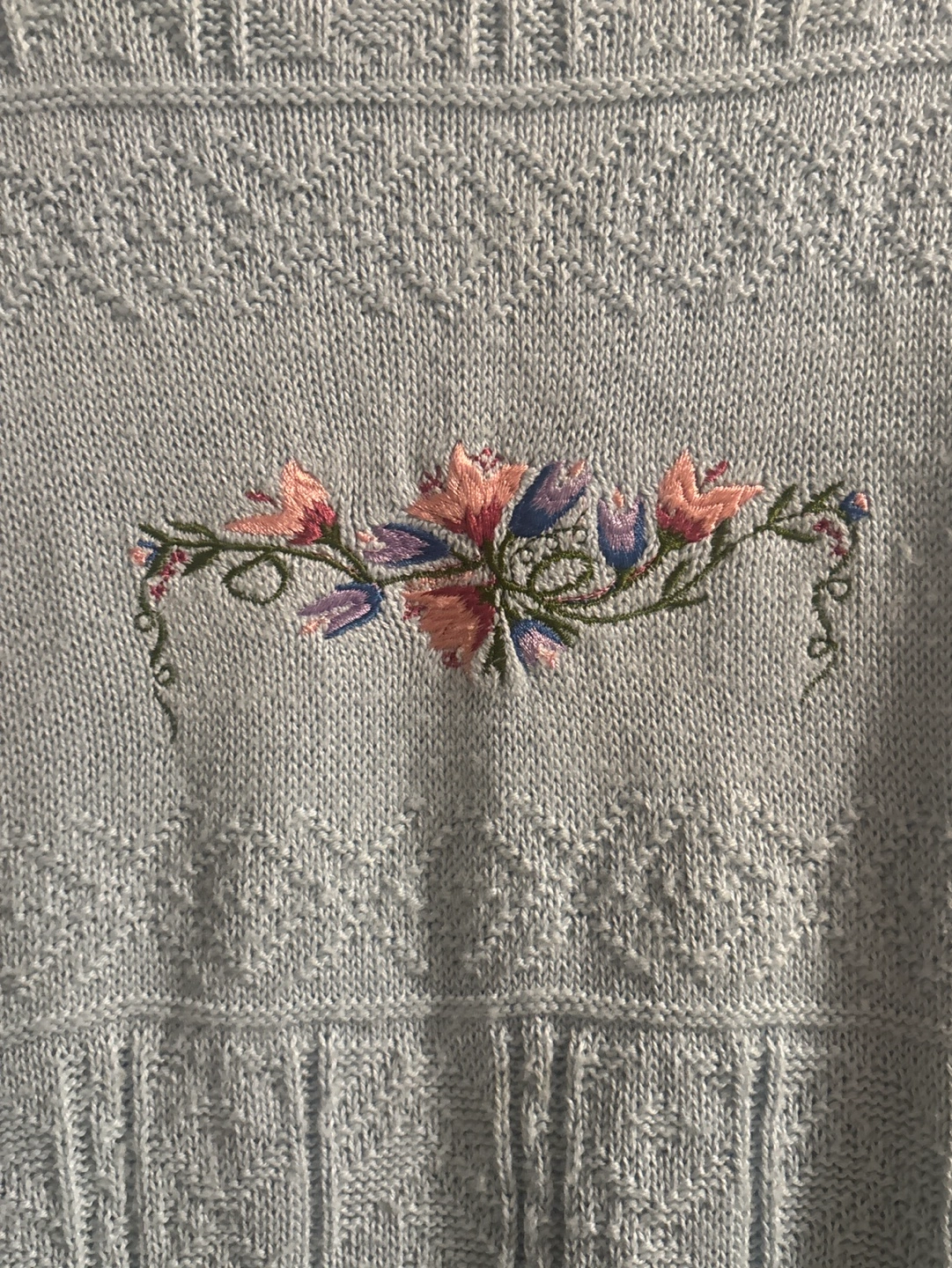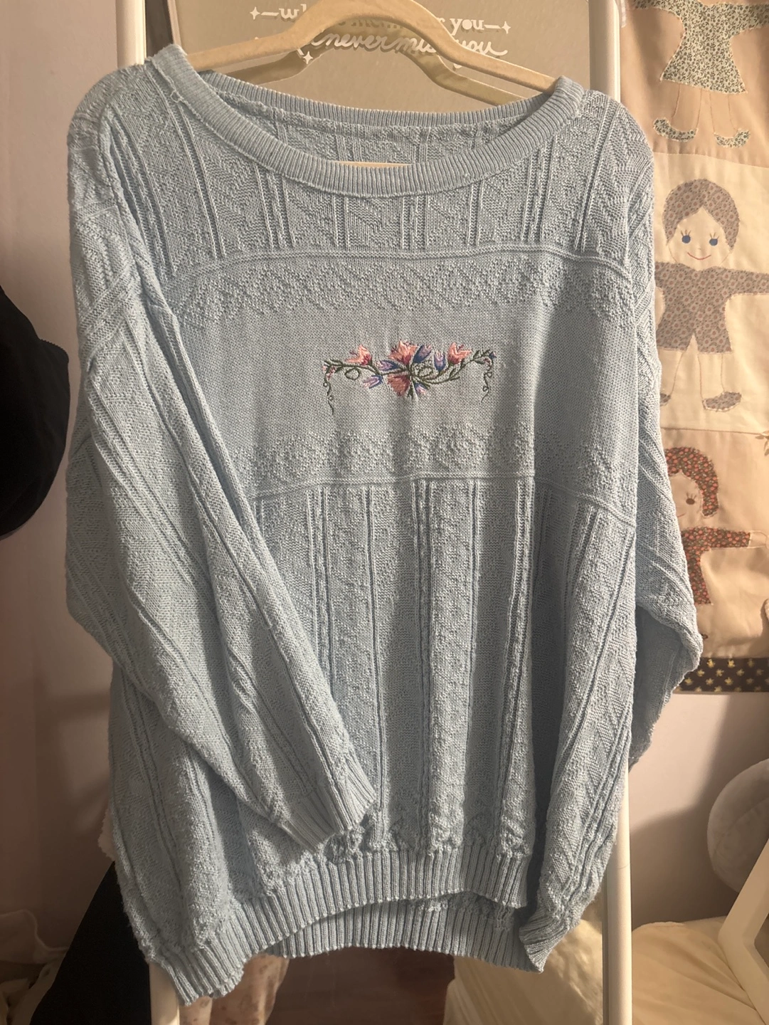 Light blue vintage sweater with floral embroidery design Otherwise noted as brand new, the clothings I listed are in USED condition. Bundle discount available for clothings items. The more you buy, the bigger the discount. Check out my listings for more!