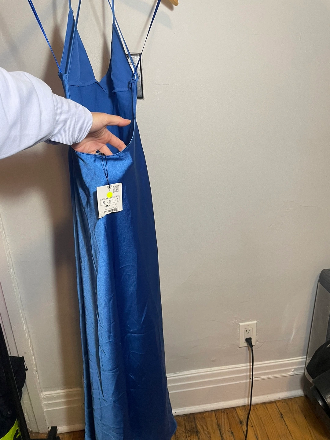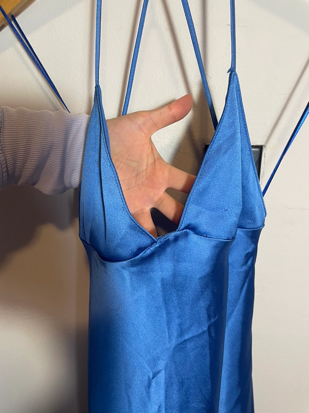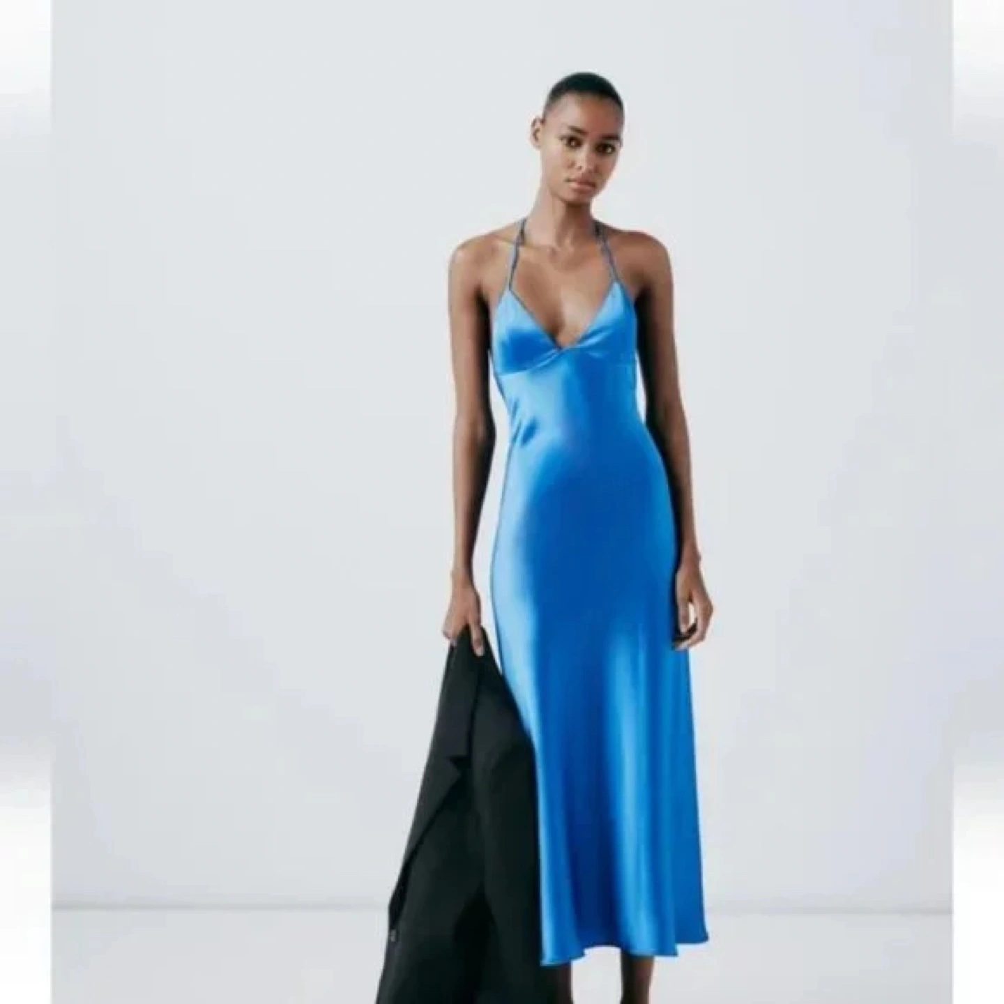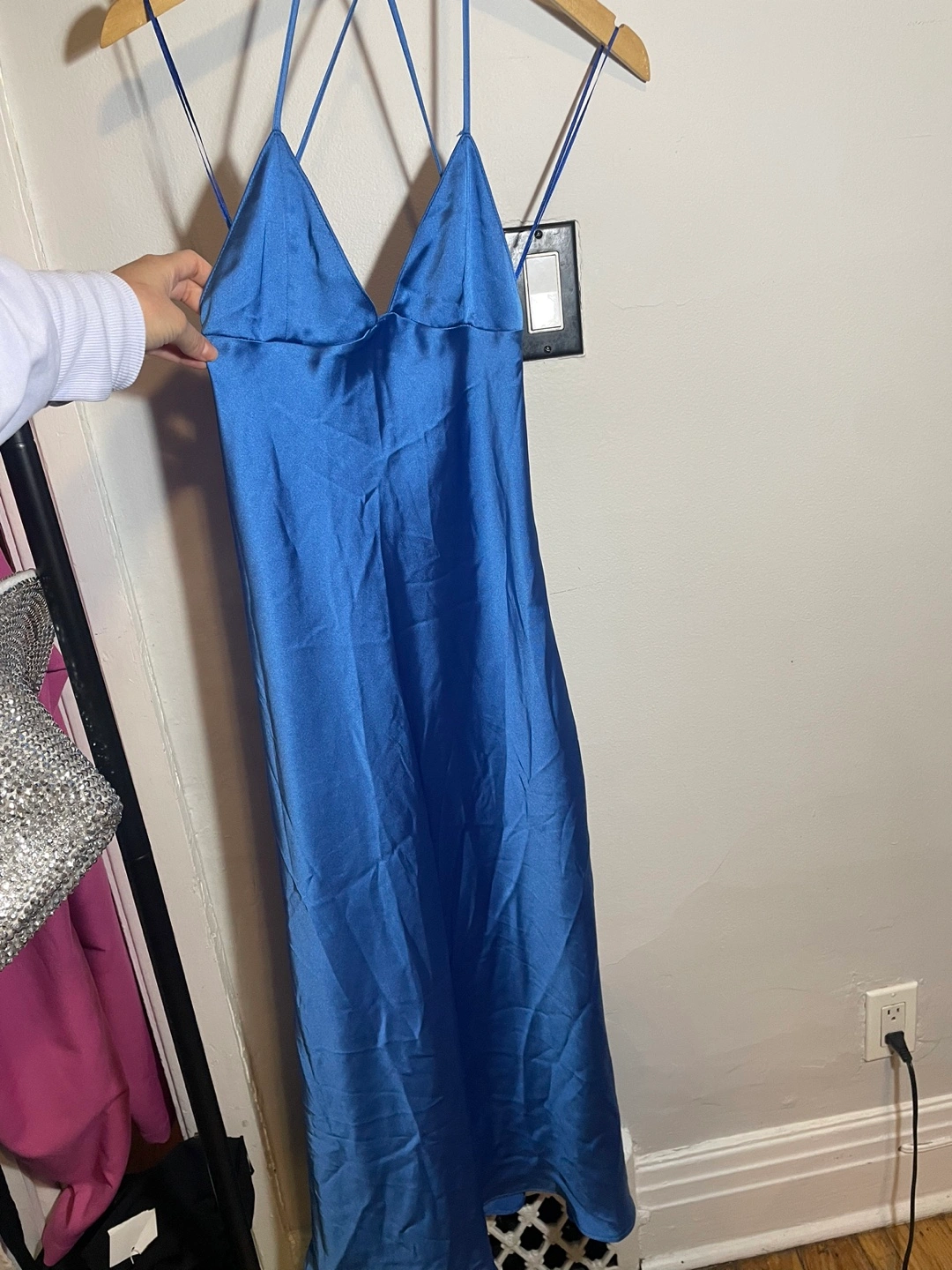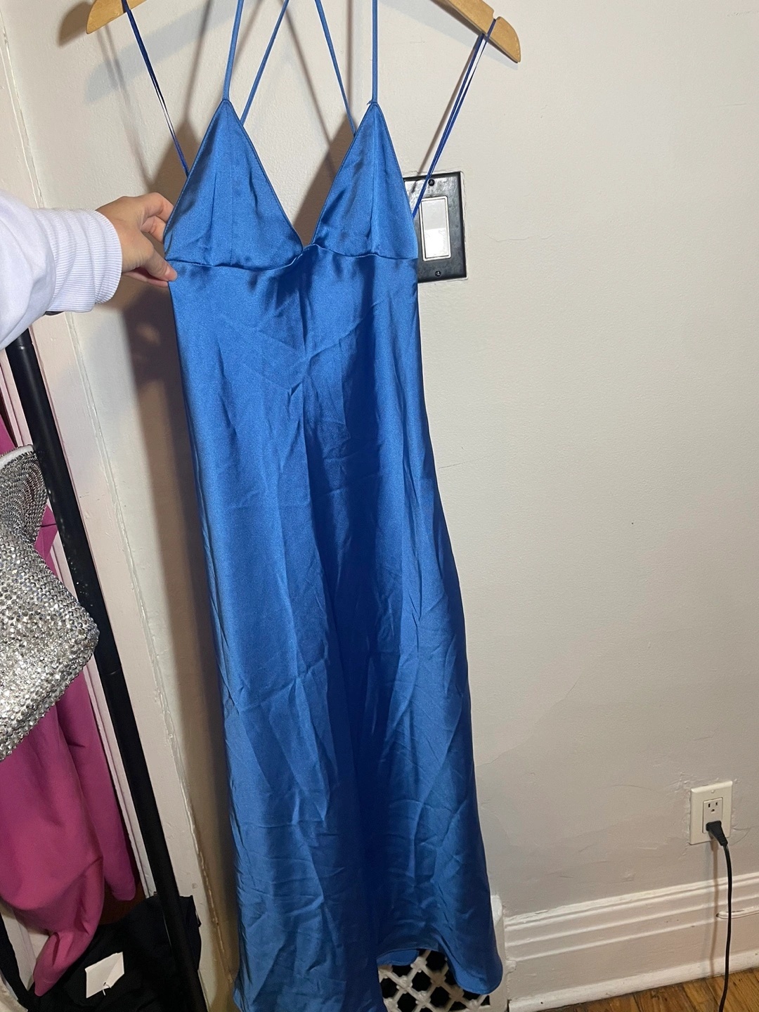 Stunning cobalt blue midi dress. Features a halter neck and bias cut silhouette. Lightweight and flows beautifully. Perfect for a night out or special occasion. If the ad is still on is AVAILABLE Pick up at Dufferin and st Clair See my other listings for a bundle pricing if interested in another item :) Cash only