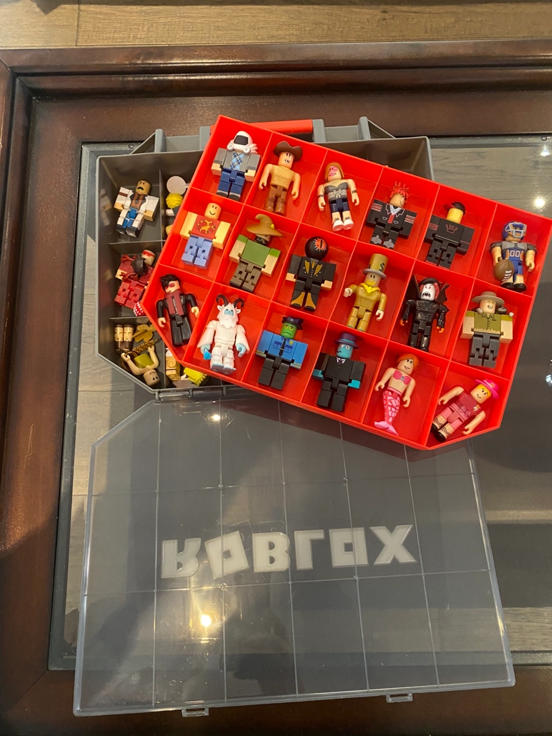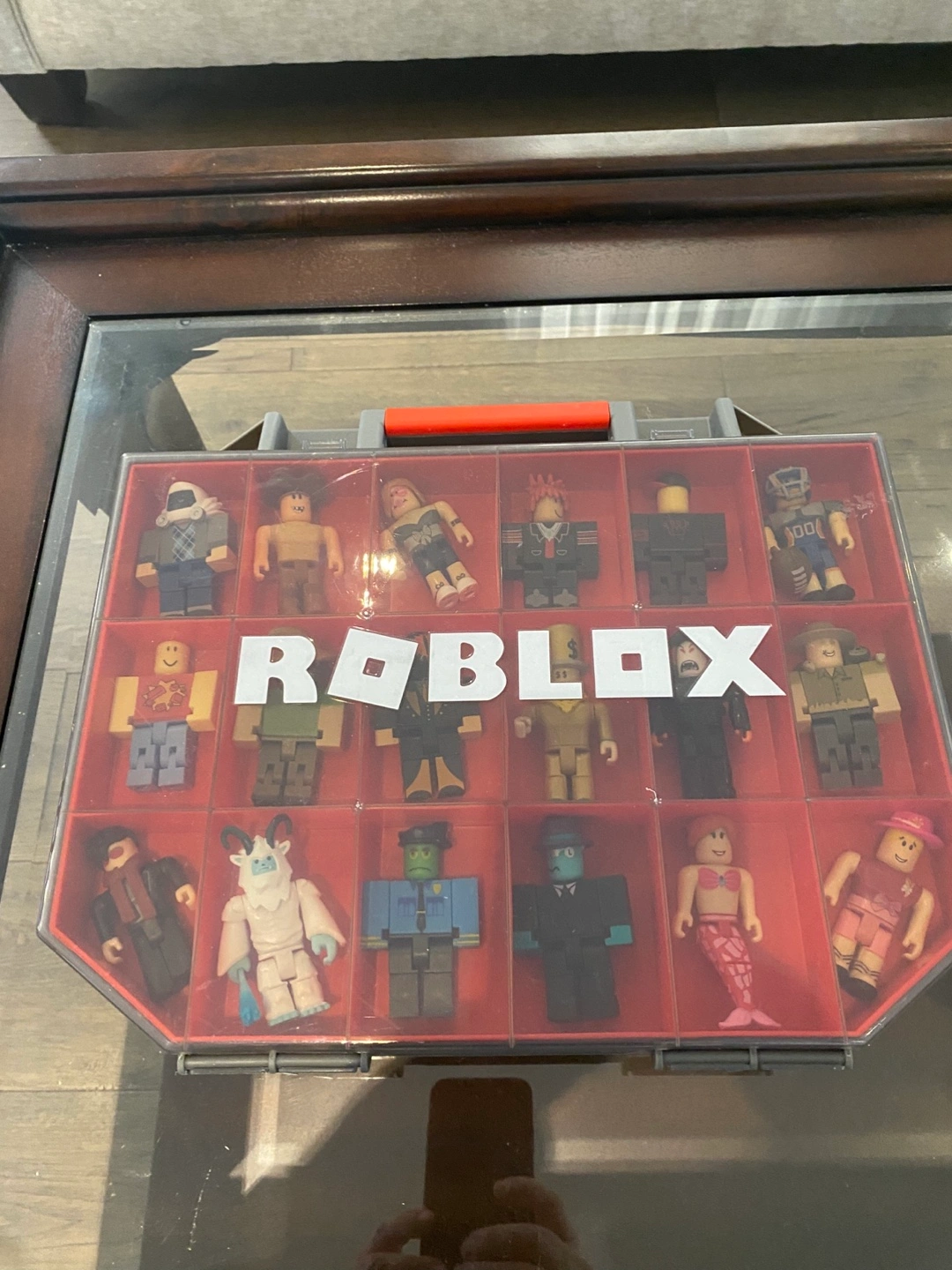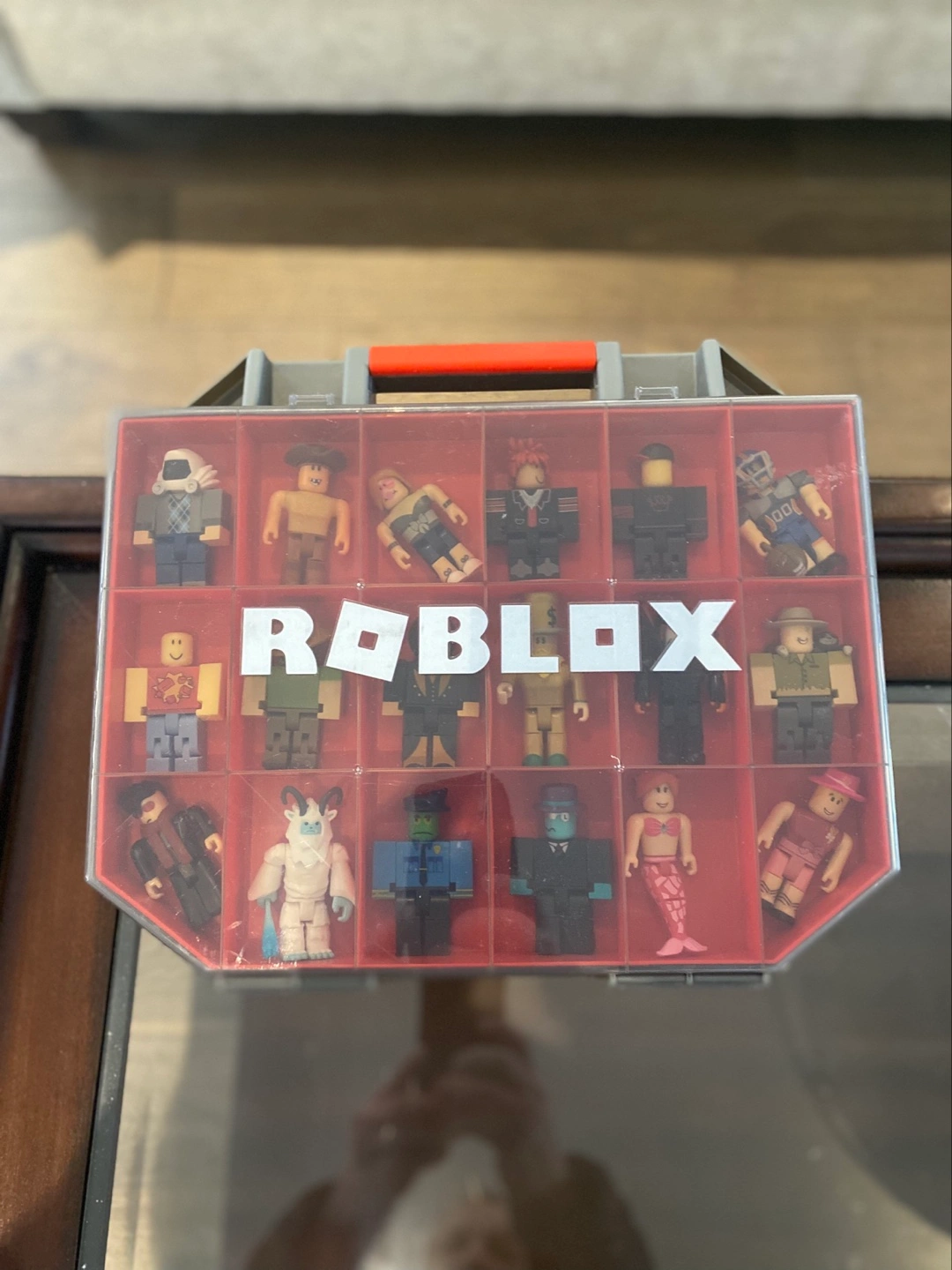 Collection of Roblox figures. Figures in a red carrying case. Many characters included. Great for collectors or players.