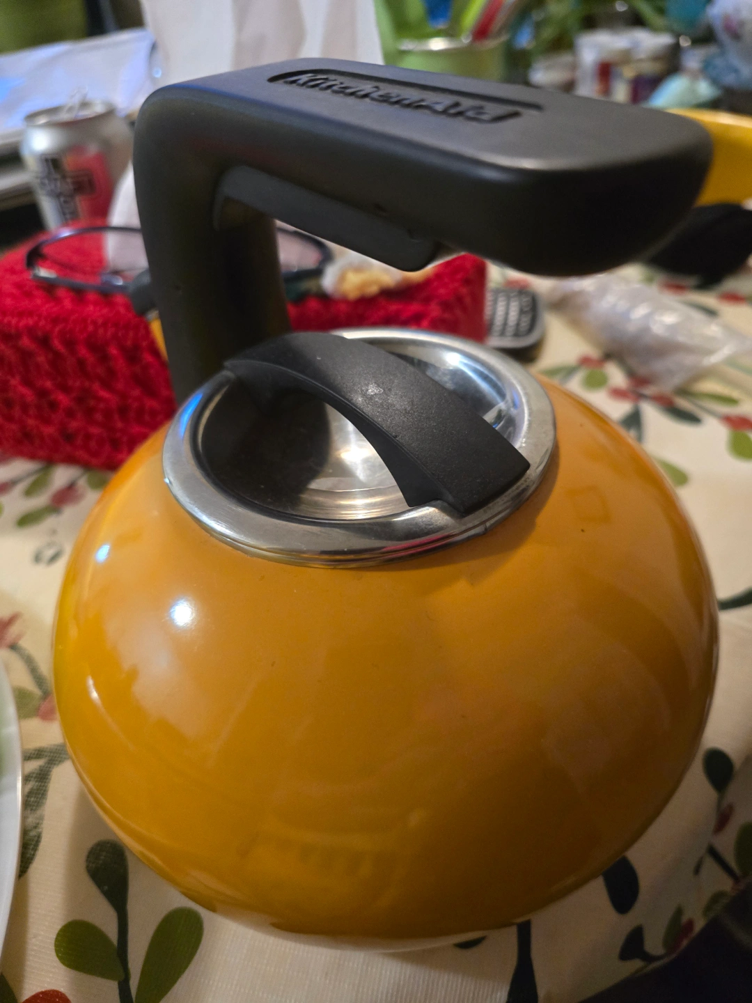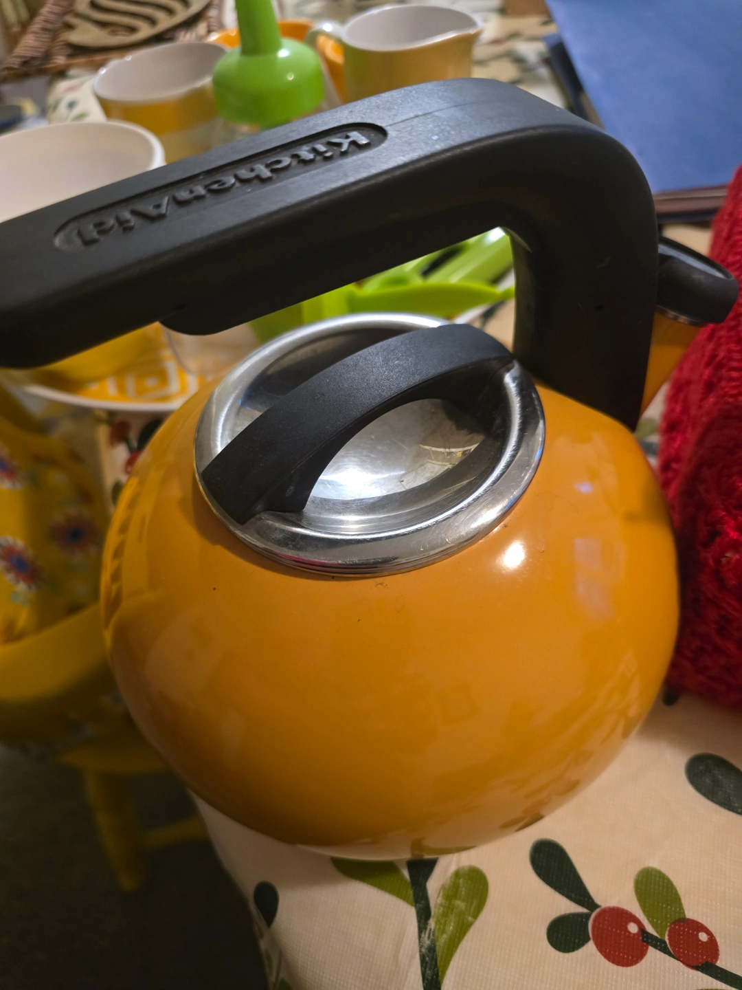 I will be moving soon! if you want this get it now! Beautiful 💛mustard yellow kettle. Enamel-on-steel construction. Ergonomic handle. Perfect for stovetop use.