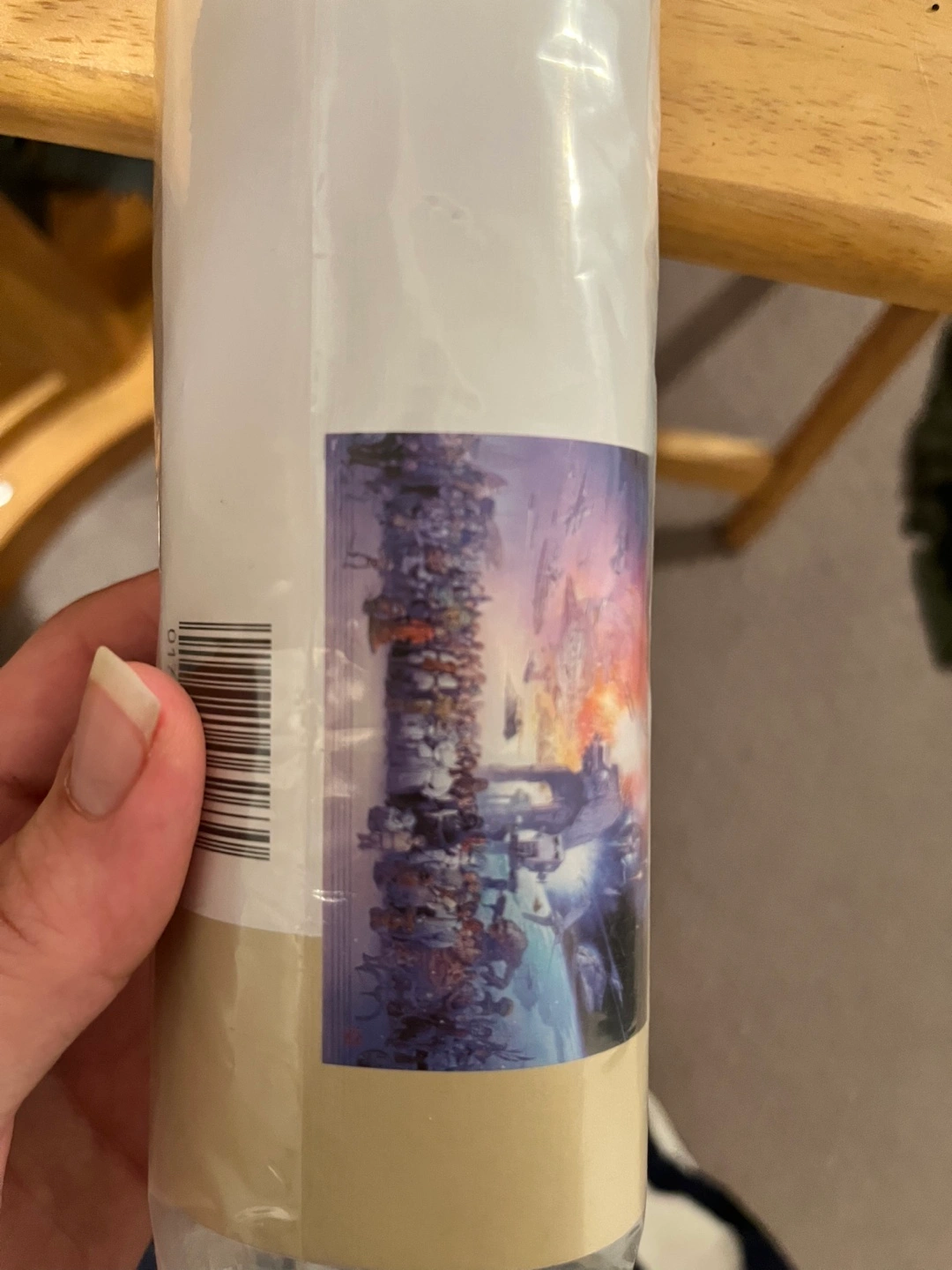 Rolled Star Wars poster. Features characters and vehicles from the saga. New, never displayed. Measures 34 x 22 inches.