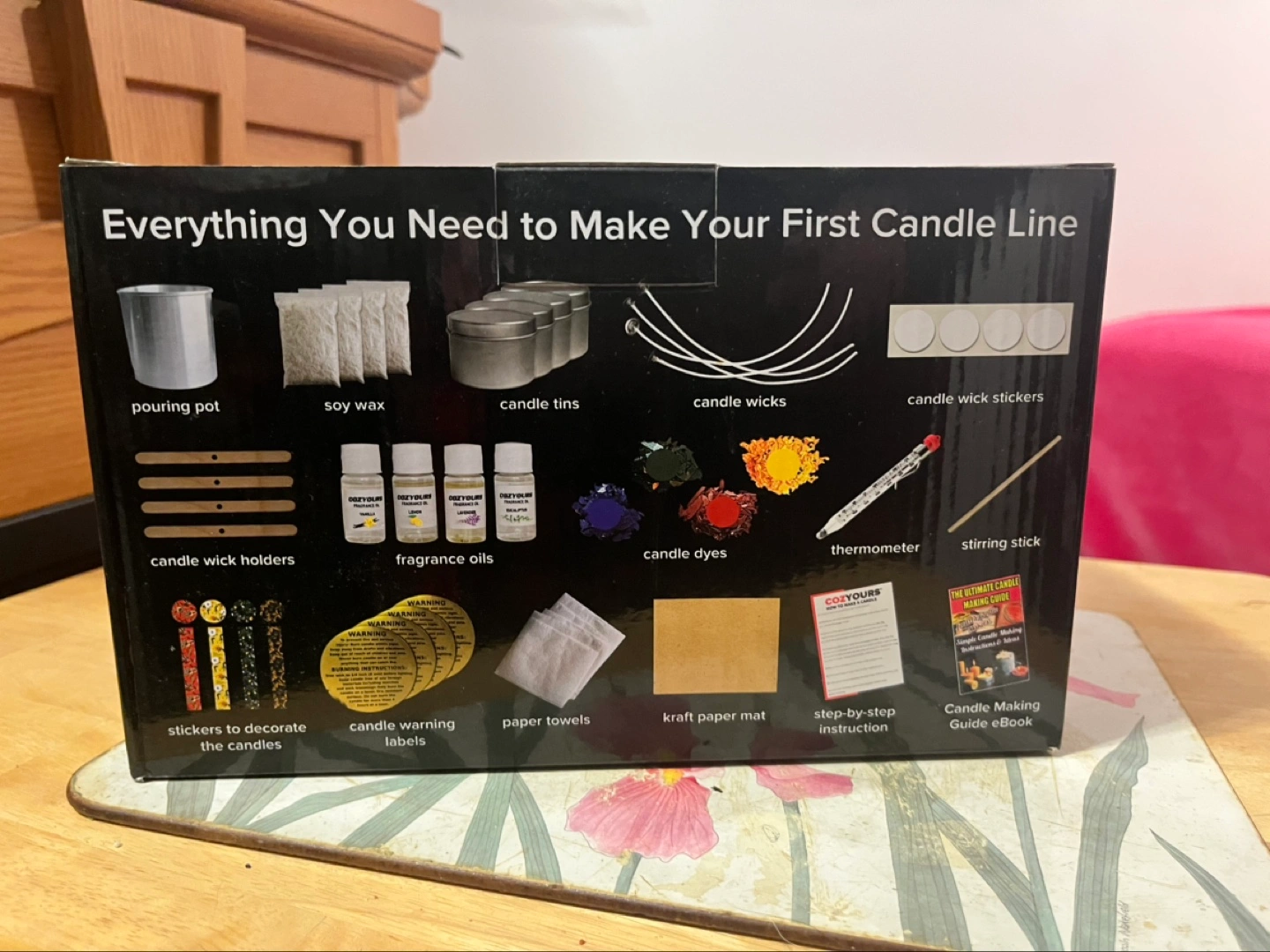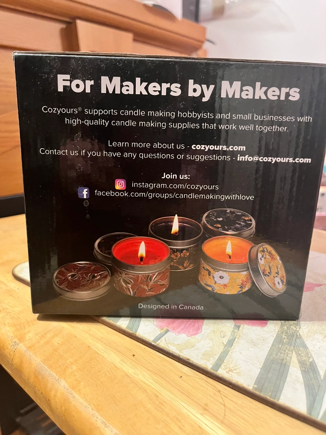 New, unopened Cozyours soy candle making kit. Everything needed to make your first candles. Includes soy wax, tins, wicks, fragrance oils, dyes, and more. Perfect for beginners. Designed in Canada.
