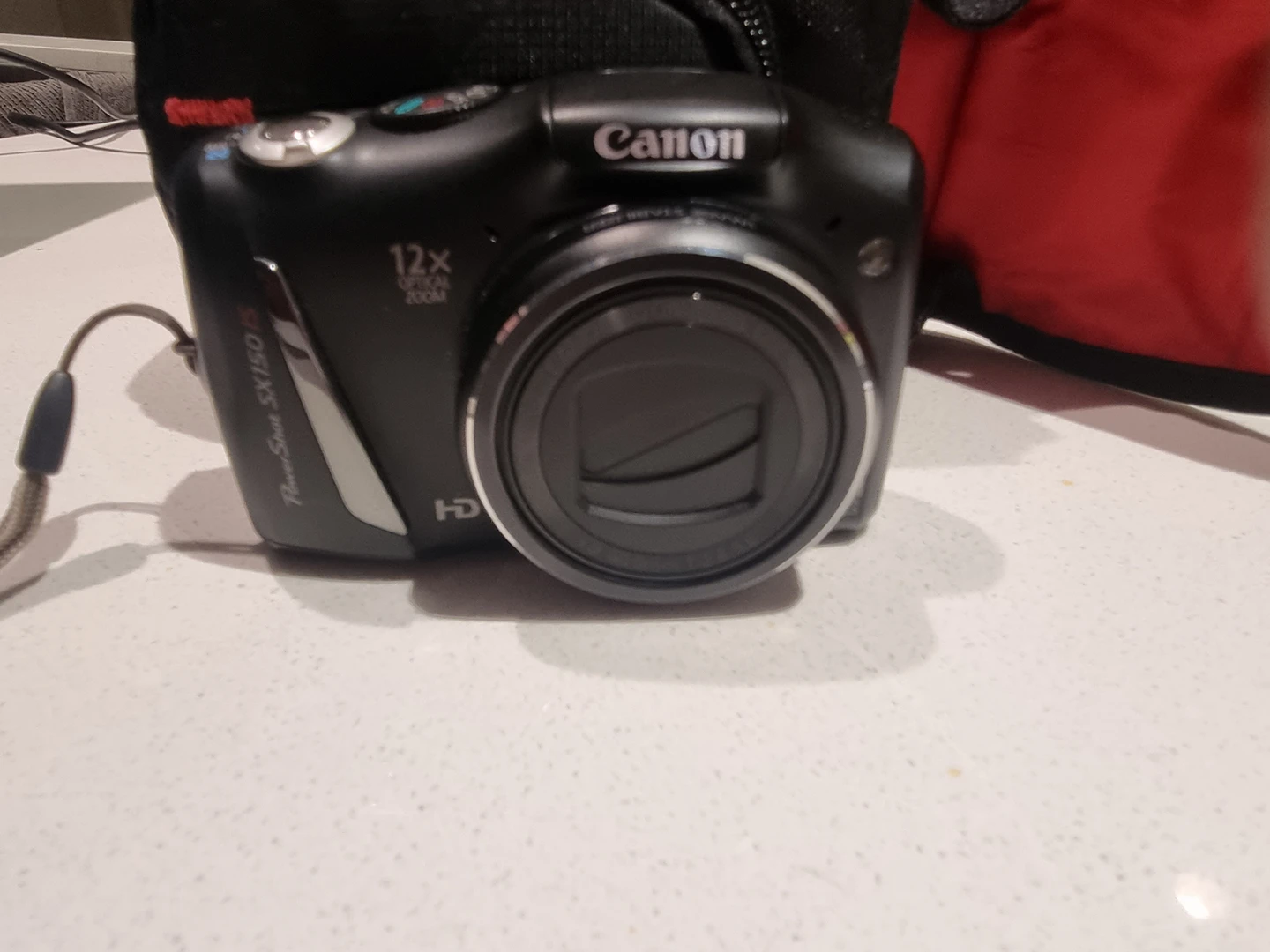 LISTED ON ANOTHER SITE TO HELP GET RID OF IT. SPECS from https://m.dpreview.com/reviews/canon-powershot-sx150-is Canon PowerShot SX150 IS HD with12x Optical Zoom 14.1MP Digital Camera. Key Features: 12x zoom (28-336mm equivalent). 14.1MP CCD sensor ISO 80-1600 3", 230k-dot LCD PASM shooting modes 'Intelligent' Image Stabilization (7 modes selected depending on scene) 720p video mode Weight (with battery): 306g / 10.7 oz. Dimensions: 113 x 73 x 46 mm (4.45 x 2.87 x 1.81in) My sales pitch: The poor thing has been used probably 3 times since I got it (once in Austria & twice in London, UK). Brought it because I was going to travel the world & do photography - but work & life threw spanners into that plan! Works perfectly, looks brand new - no dents, or massive scratches/scuff marks, miniscule marks on the display screen, as has spent 98% of its life in the case. Will come with a case (with waterproof cover in a pocket on the back), a wrist strap (not an original), a fresh set of batteries - yes 2XAA batteries will be included (unlike a lot of listings on ebay etc) & 2 x 32gb memory cards, a 64gb card (brand new still sealed). No manual unfortunately as this was disposed of as was the box because I thought I knew everything about it. Camera has got the port on the bottom for a tripod but I never brought one for it. Pick up on 1300 block of Seymour so no postage costs either!