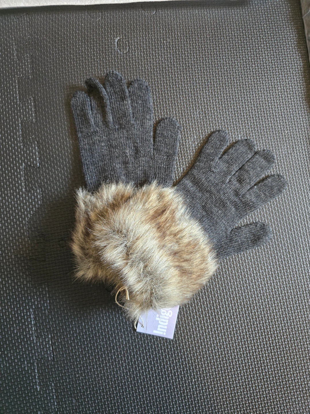 New with tags! Ladies Grey Knit Gloves with Faux Fur Cuff