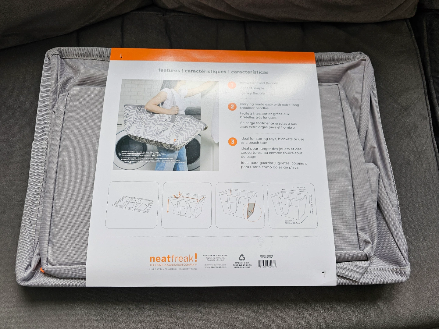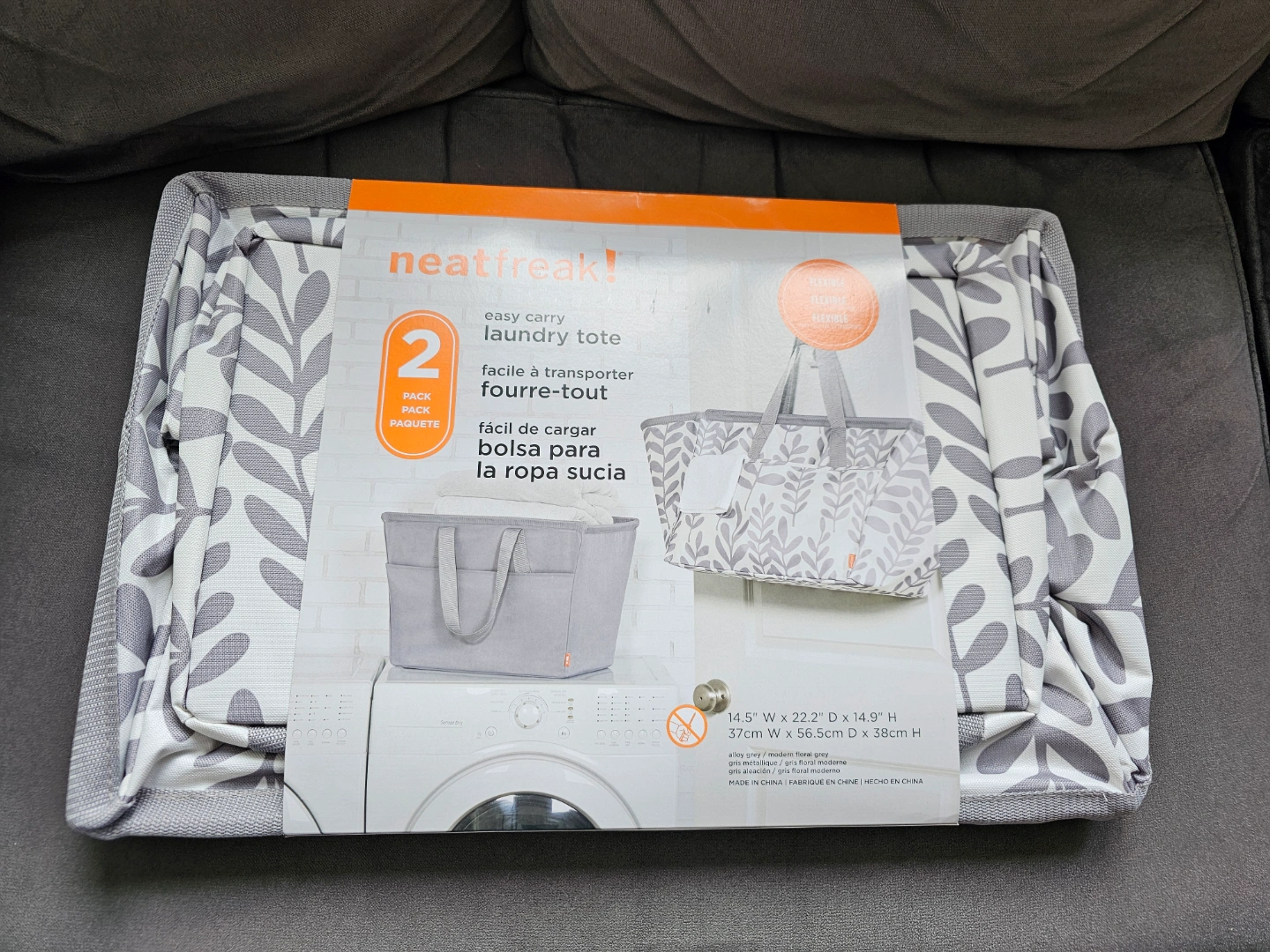 BNIP Dimensions: 14.5" W (37 cm) x 22.2" D (56.5 cm) x 14.9" H (38.0 cm) Pack of two hamper baskets Portable and multifunctional basket and tote bag in one Lightweight and easy to carry with one hand Sides flex to close for use as a tote bag and then reverts to its original basket shape Collapses flat to store out of sight when not in use Grommet reinforced long handles to carry over the shoulder Easy to haul laundry down the stairs again with just one hand or over your shoulder Flexible laundry basket equipped with carry handles and flexible sides for portability Great for storing toys, blankets, use as a beach tote, and more FINAL SALE Accepting cash only please