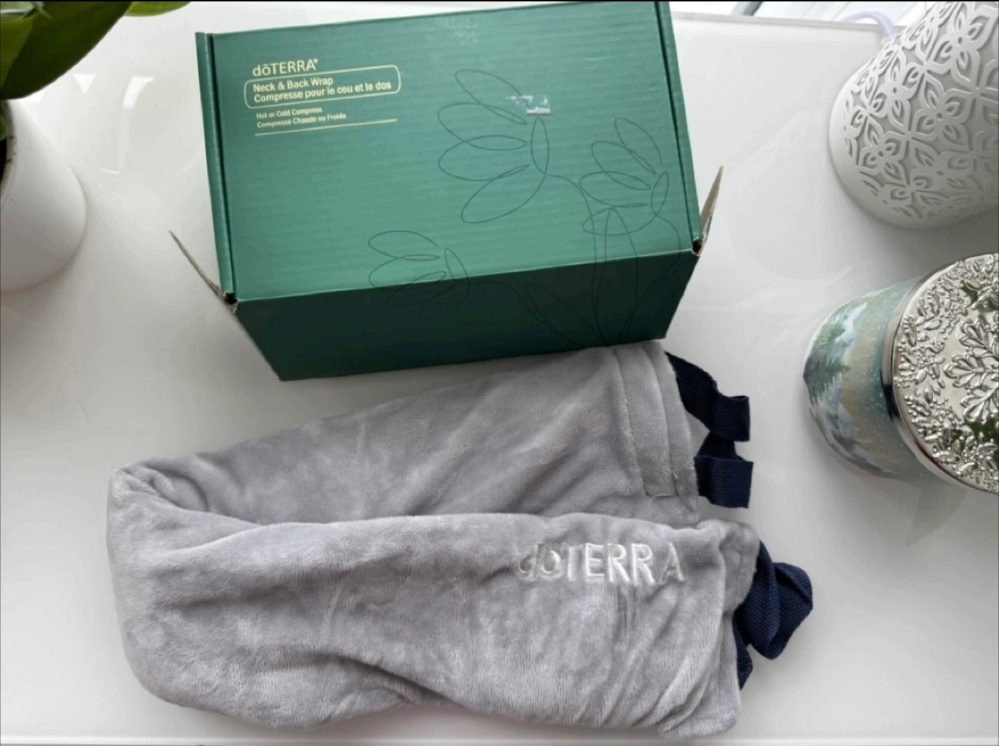 Grey plush neck and back wrap. Hot or cold compress. Comes in original box. dōTERRA branding. Never used.