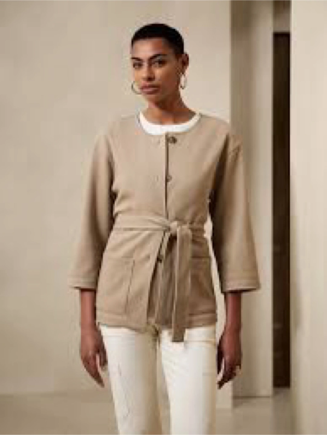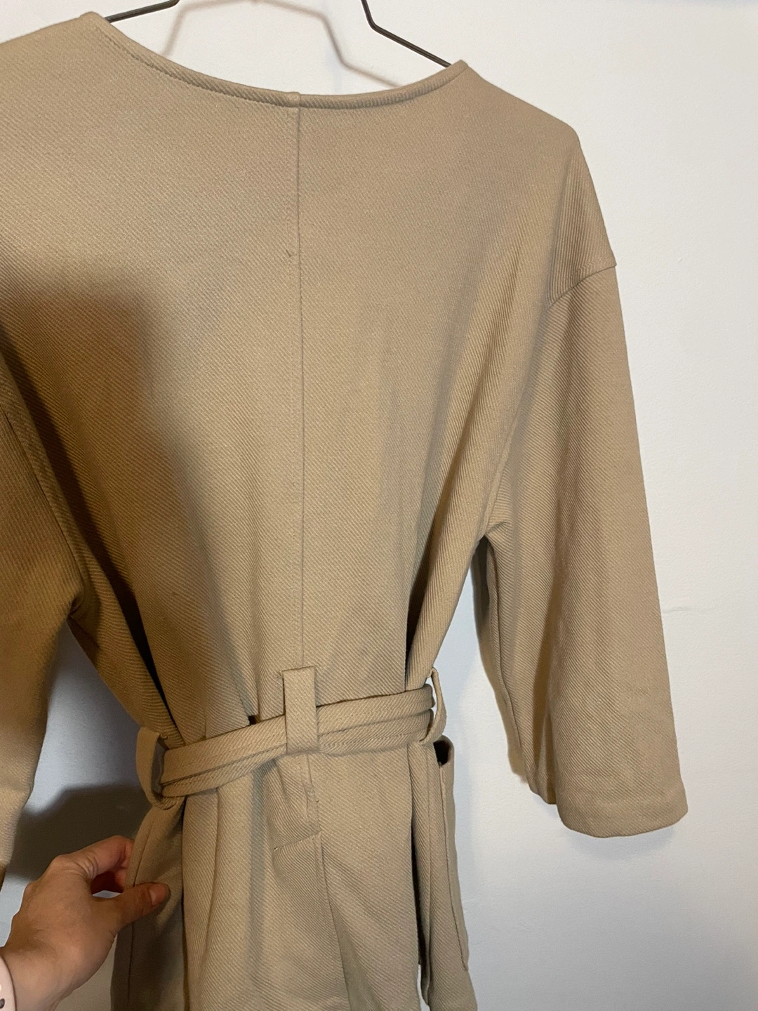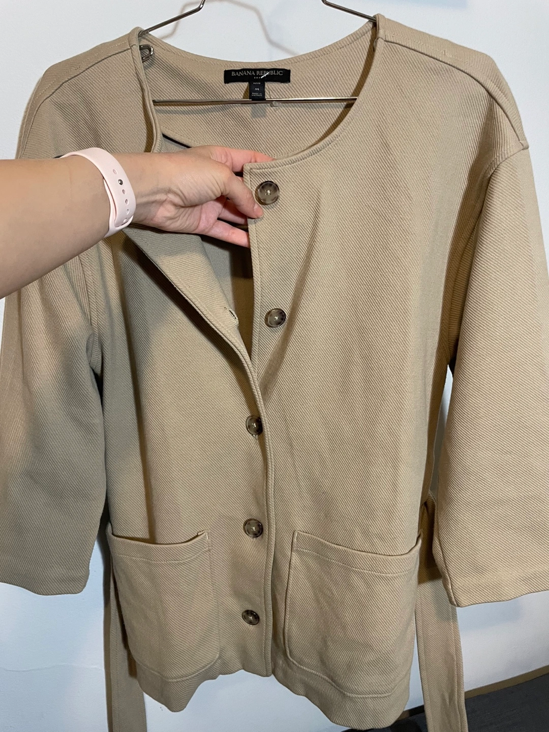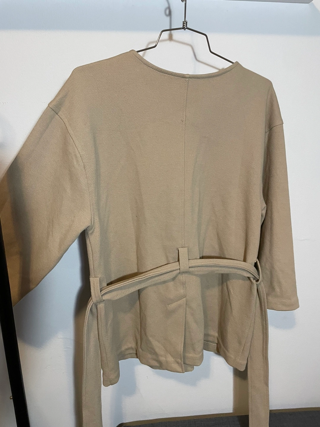 Women's beige button-up jacket. Three-quarter sleeves, pockets, and a self-tie belt. Relaxed fit. If the ad is still on is AVAILABLE Pick up at Dufferin and st Clair See my other listings for a bundle pricing if interested in another item :) Cash only