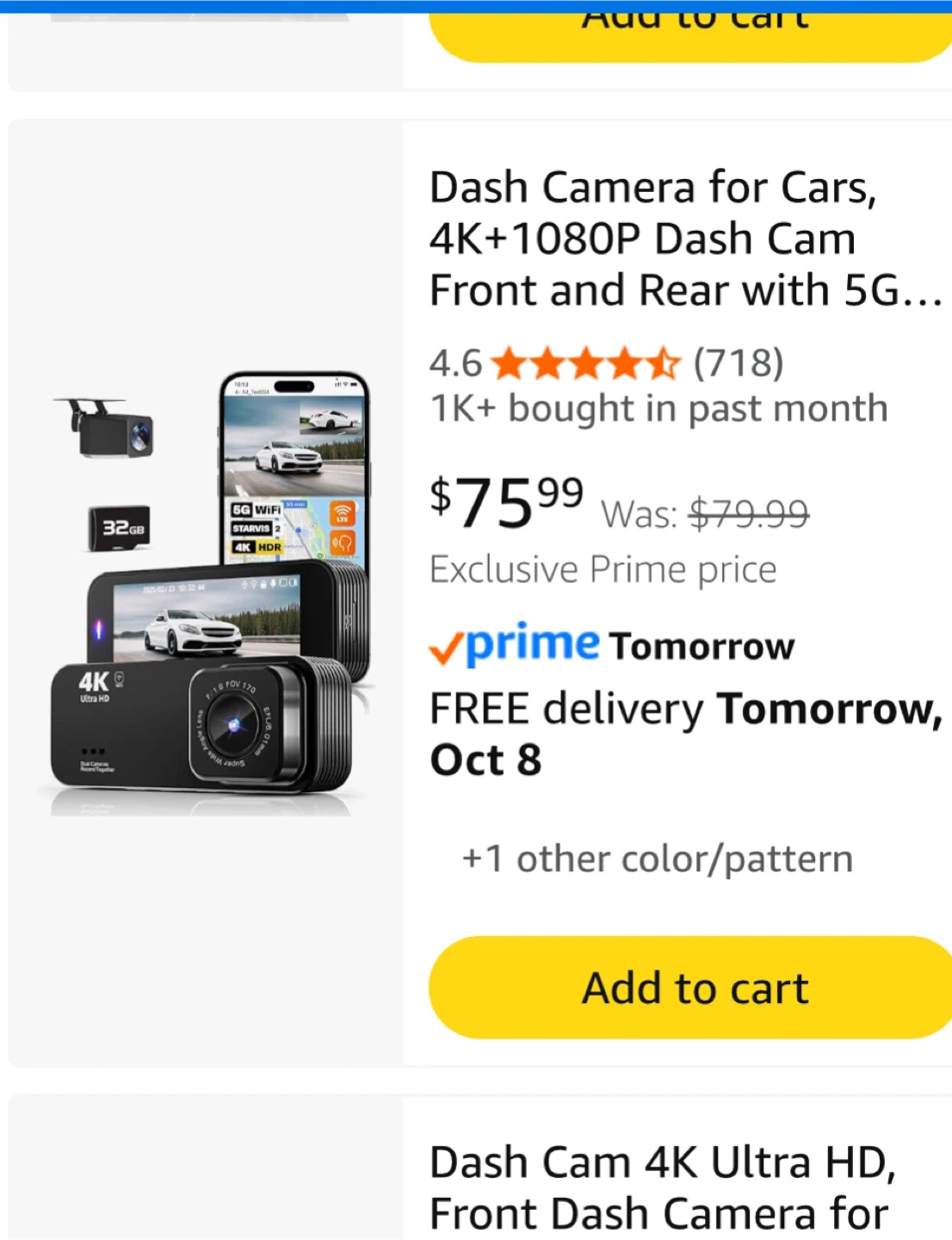 Selling a dash camera for cars that records in 4K in the front and 1080P in the rear! It comes with 5G WiFi, a 32GB card, night vision, G-sensor, loop recording, and 24H parking mode. Easy WiFi-APP control for easy access and operation New open box