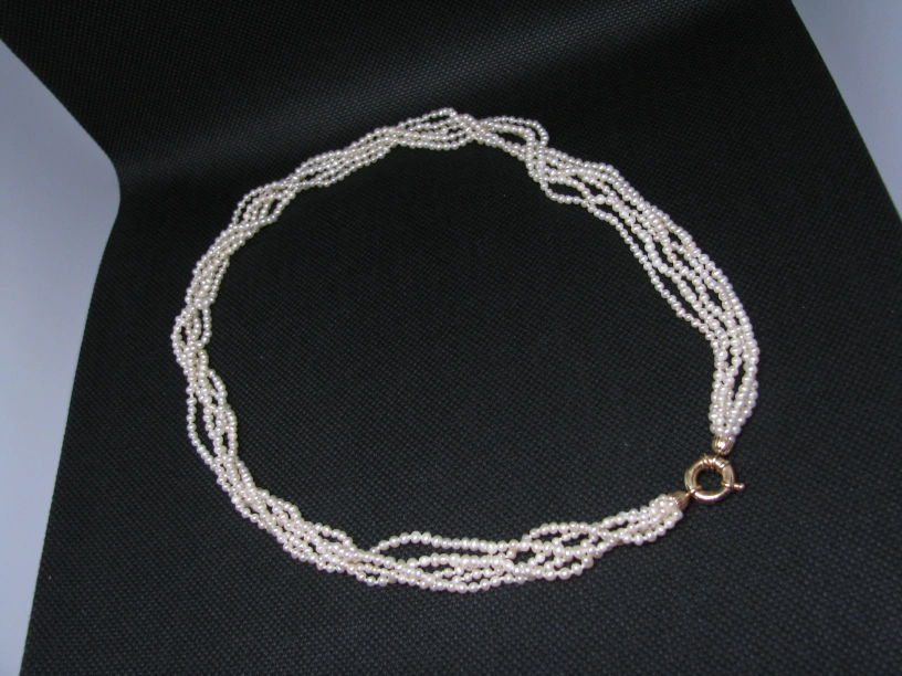 5 Strand 1mm Fresh Water Pearl Necklace - 16", Gold Clasp