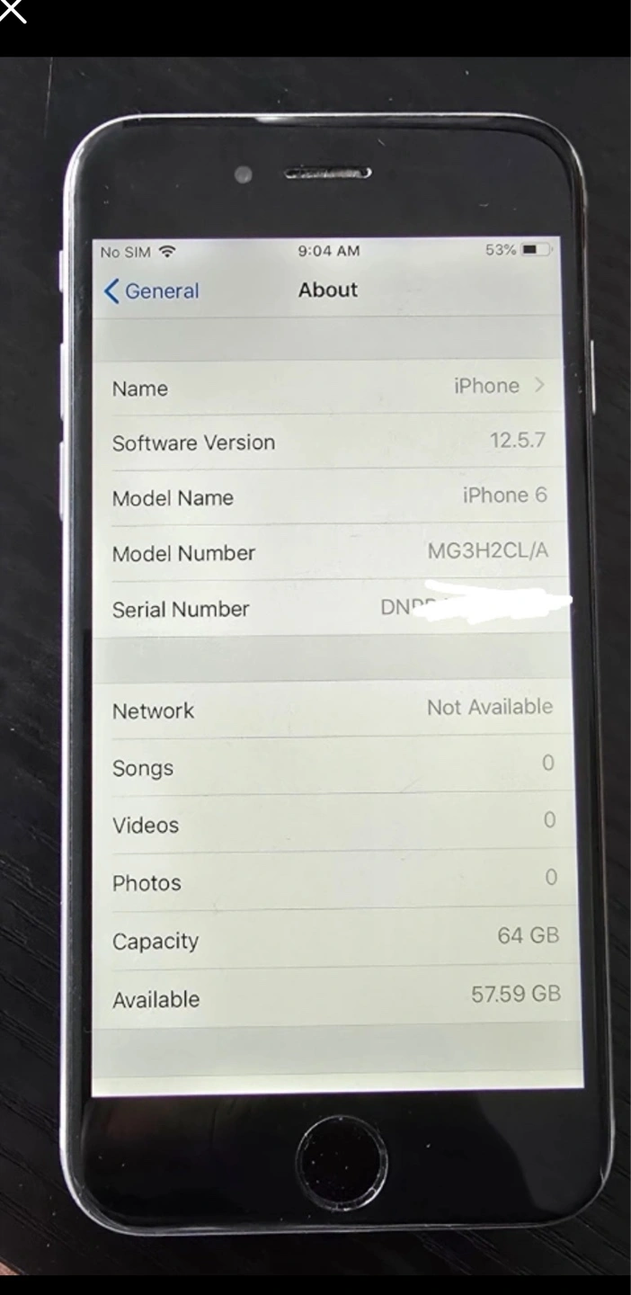 Used iPhone 6, 64 GB storage.unlocked.Silver colour. 86% battery health. Software version 12.5.8. Or trade.pick up only.no charger included.
