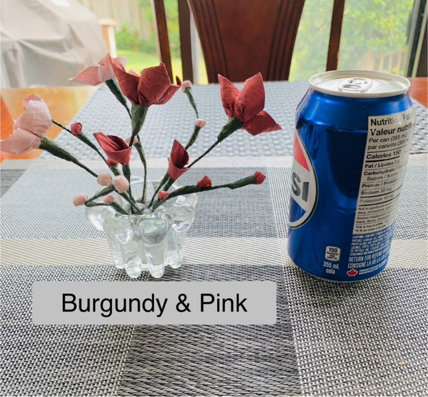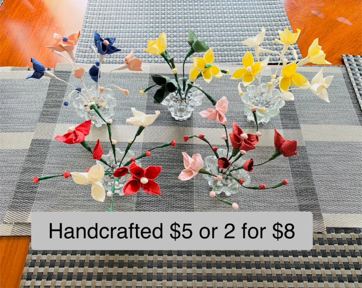 Mother’s Day Special NEW ONE-OF-A-KIND Handcrafted flower petals and buds using craft paper. Placed in 2”x3” glass pot. Twistable stems allowing you to shape as desired. Makes a UNIQUE room decor. Spray with your favourite room freshener or drop a couple of squirts of essential oil. Flowers and pebble base are glued on (refer to demonstrated picture of decor upside down). $5 (CAD) OR buy 2 for $8. Smoke free home. Does not come with room freshener or essential oil. Pop can for size comparison. MEET-UP LOCATION (no mail. / no delivery): - Public Meet-up: McLean Community Centre (95 Magill Dr. Ajax corner of Westney/Magill)… OR … - Door Pickup: 1 block from the Centre (address to be provided on the day of pickup) SERIOUS BUYERS ONLY / FINAL SALE / Cash Payment at pickup / NO HOLDS (Items will be sold on a FIRST-COME/PAYMENT-FIRST-SERVE basis!)