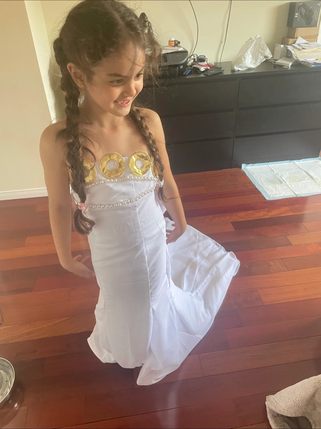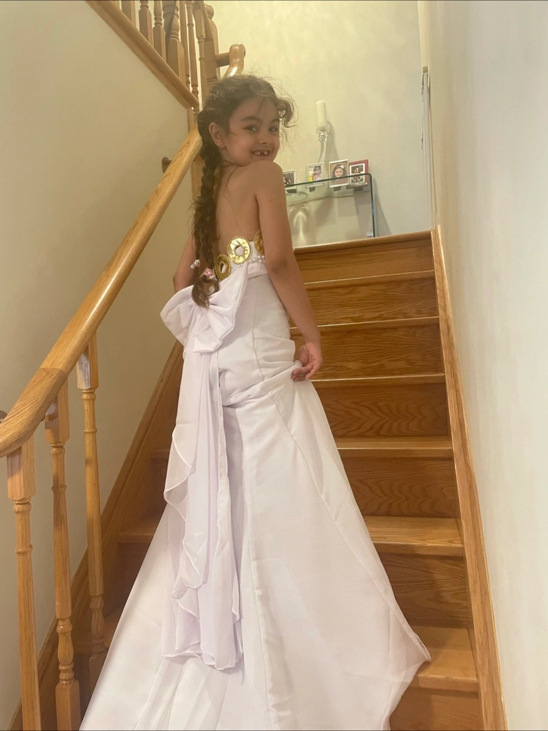 Measurements: Bust 13” across Waist 11” across Length 42” from top to bottom Got this made for my daughter’s 8th birthday party. It can be worn for any special occasion. It’s truly unique Worn once only