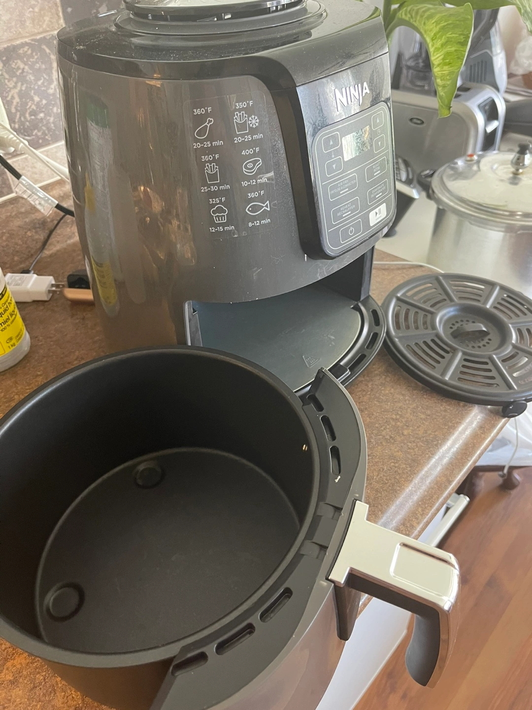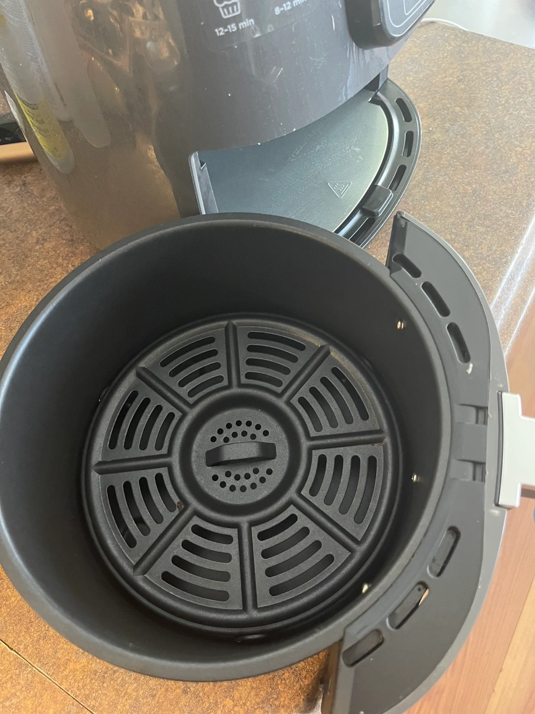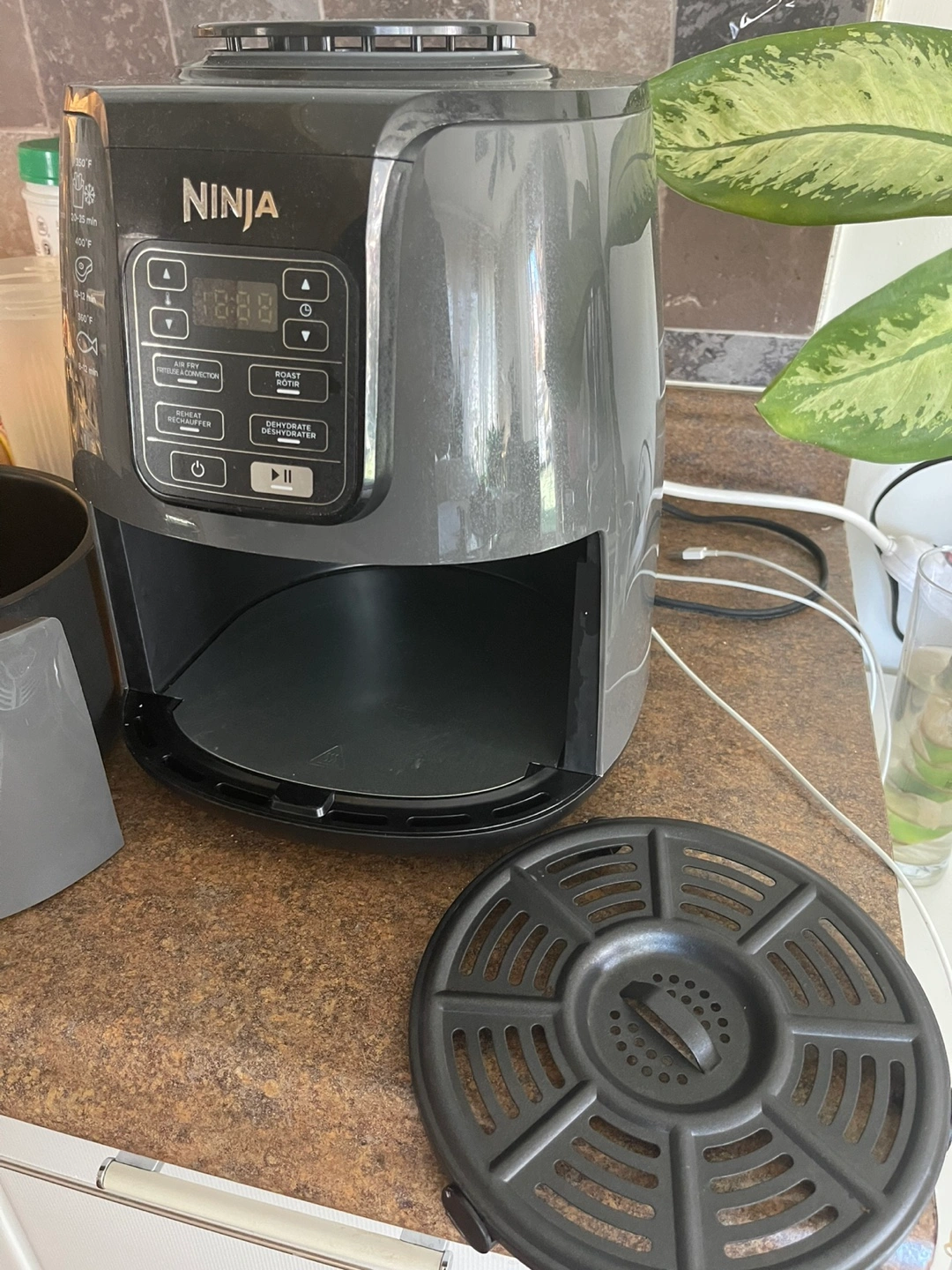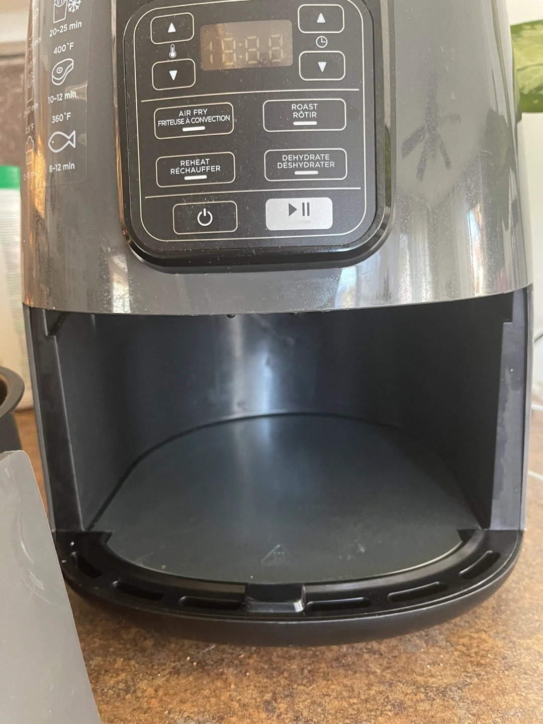 Digital air fryer. Multiple functions: air fry, roast, reheat, dehydrate. Includes crisper plate and basket. Great for smaller kitchens.