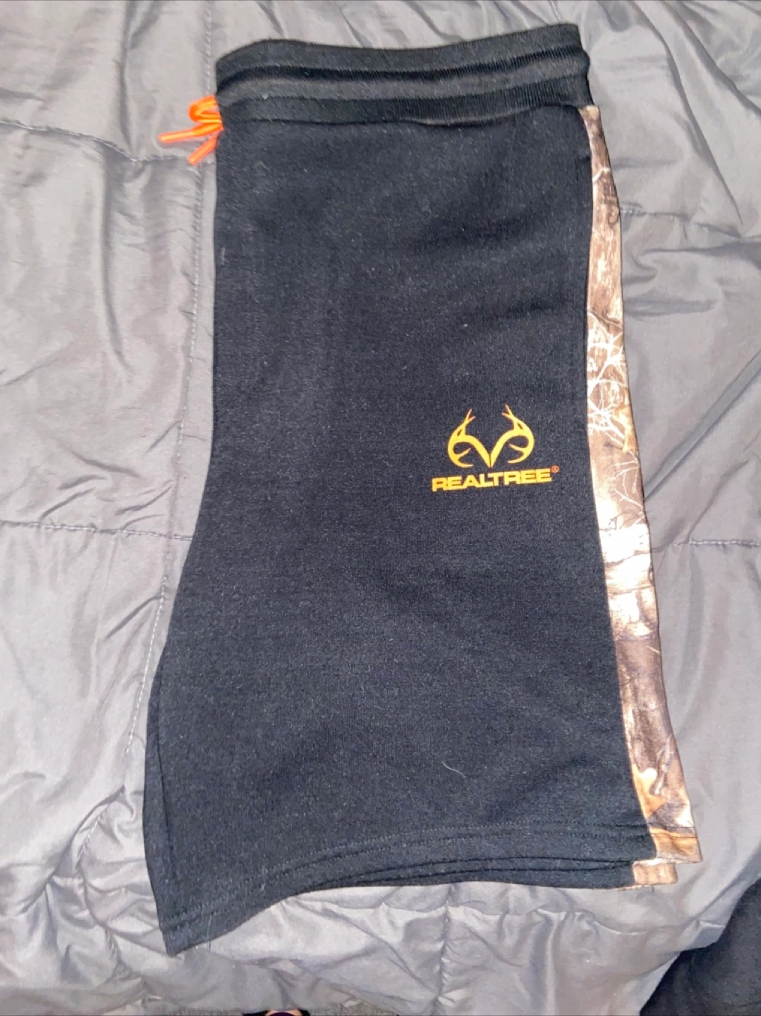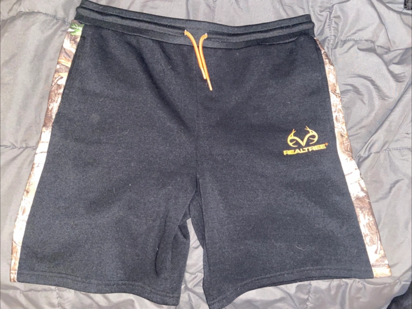 Realtree Camo men Shorts szL Get ready to lounge in style with these Realtree camo trim sweat shorts! These shorts are in good condition and perfect for casual wear or a relaxed day at home. They feature a comfortable fit with the Realtree logo adding a touch of outdoorsy flair. Features: - Brand: Realtree - Size: Large - Material: 100% Polyester - Colour: Black - Detailing: Realtree camo trim on sides Condition- hardly worn Has No rips. No stains. Cash Payment Only No Refunds / Exchange No try ons, No trading, No holds. All purchases are Finally Sale From a Smoke Free home Fast pick up Confirmed Price-$20 Cash only Pick up- Only at TTC Station- Coxwell subway station Located In East York, Toronto if the ad’s still up, the shorts are still up for grabs!