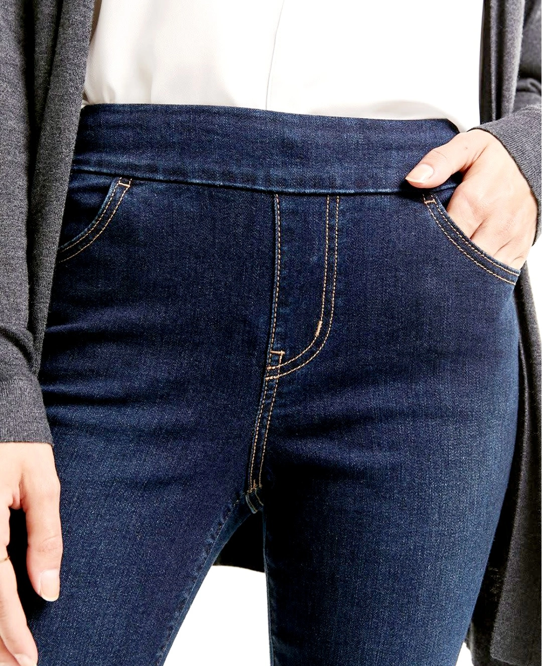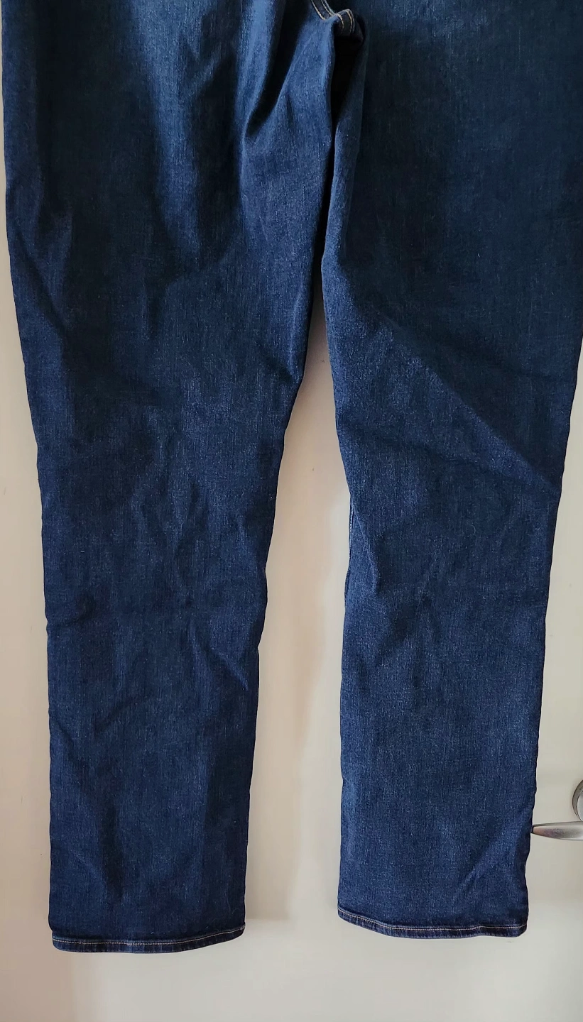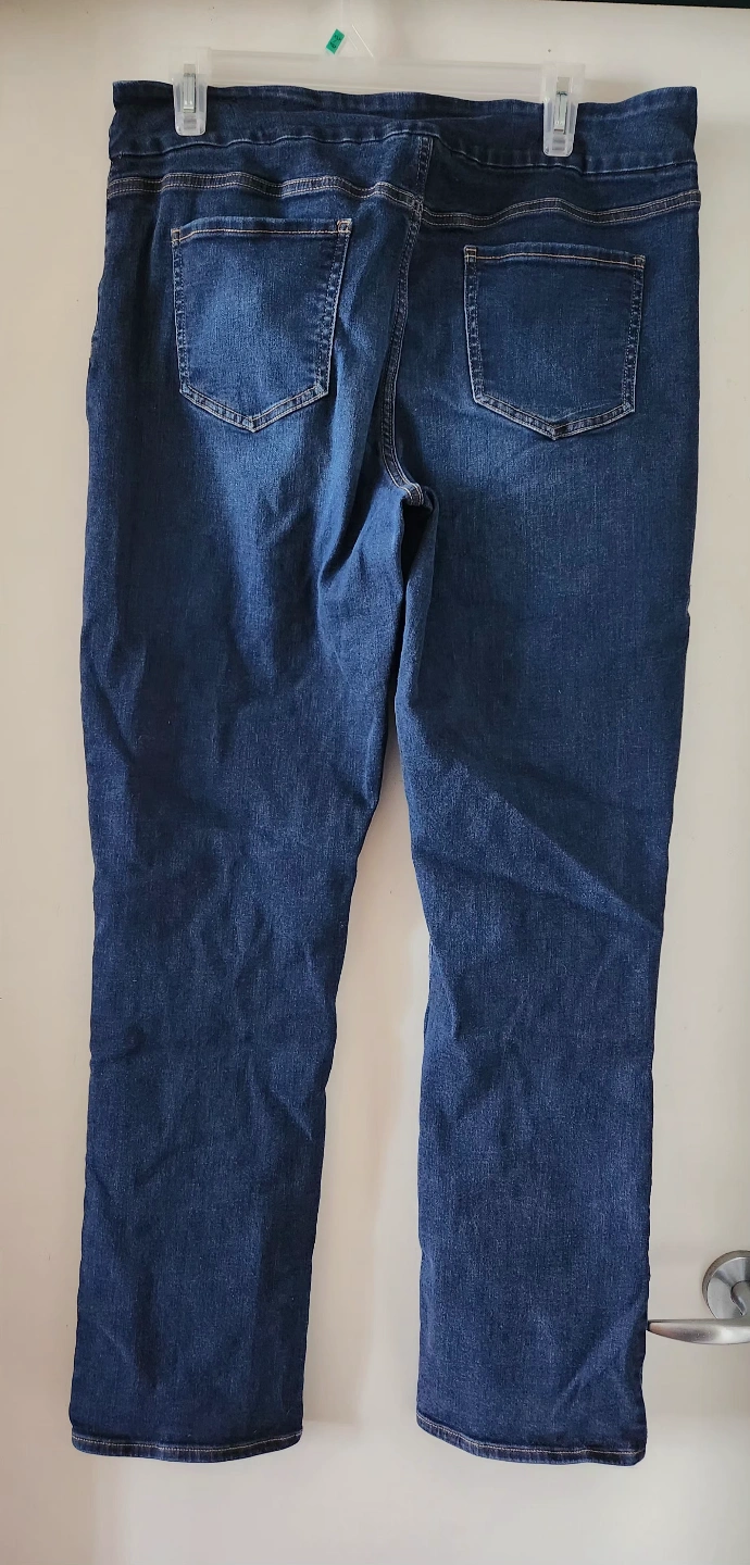 The Original Comfort straight leg jeans feature a comfortable waistband with fake fly (pull on), stretch denim, mid-rise, and 5 classic pockets. Women's size 32 waist with a 31 inch inseam. Made of 72% cotton, 17% polyester, 9% viscose, and 2% elastane. Good condition.