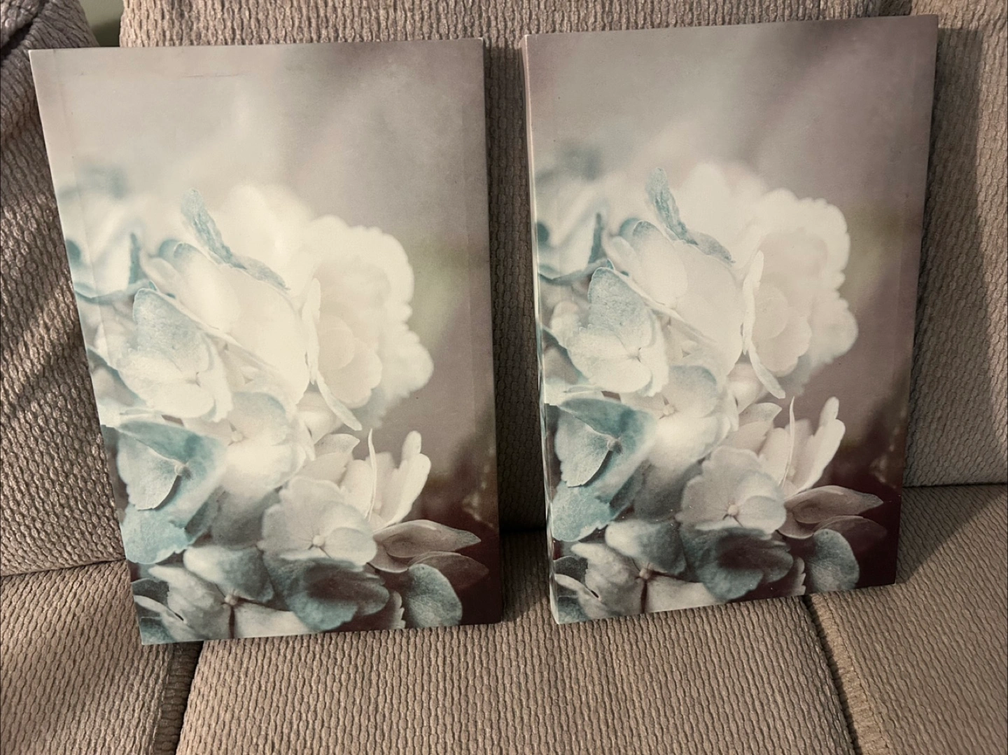 Two matching canvas prints. Floral design. Beautiful muted colours. Perfect for adding a touch of elegance to any room.