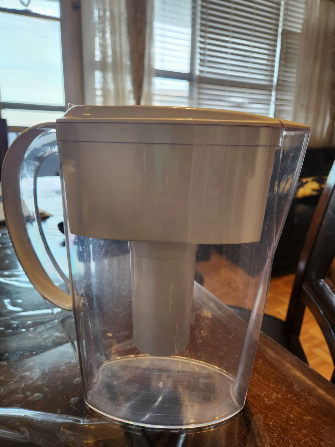 Large capacity water filter pitcher. Clear plastic body with a white lid and filter. Used, but in good condition. like new smoke and pets free home