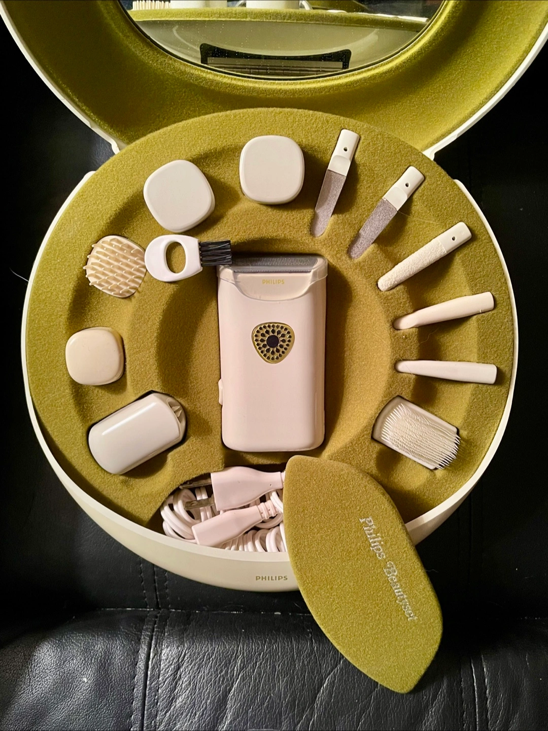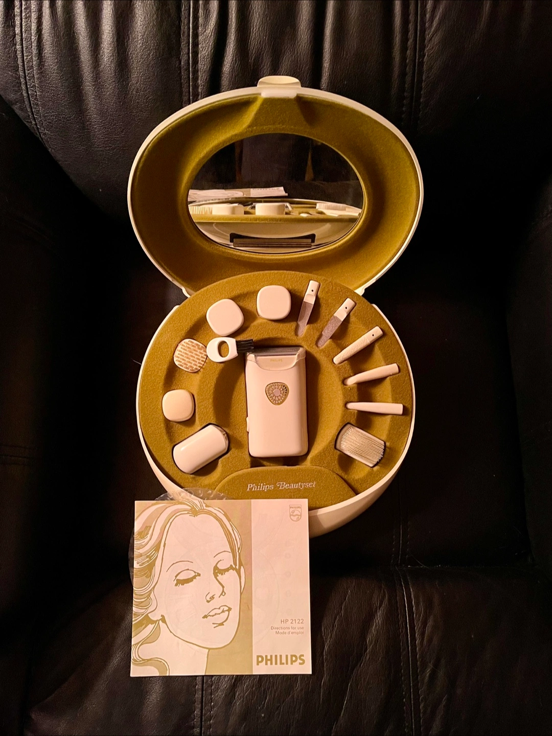 Vintage Philips 1970s razor, facial and skincare kit in nearly new condition. Complete with all attachments and original packaging. Various tools for cleansing and exfoliating. Excellent for collectors. Contents are in new condition and I don't believe they were ever used. Tested and working.