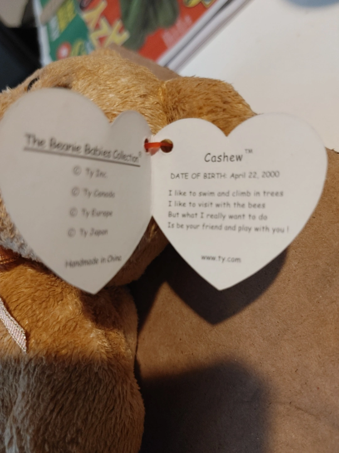💚I HAVE HAD THIS LITTLE GUY FOR 25 YEARS! 💚MINT CONDITION WITH TAG 💚TY BEAN BABIES. THIS IS "CASHEW", FROM THE 2000 COLLECTION.