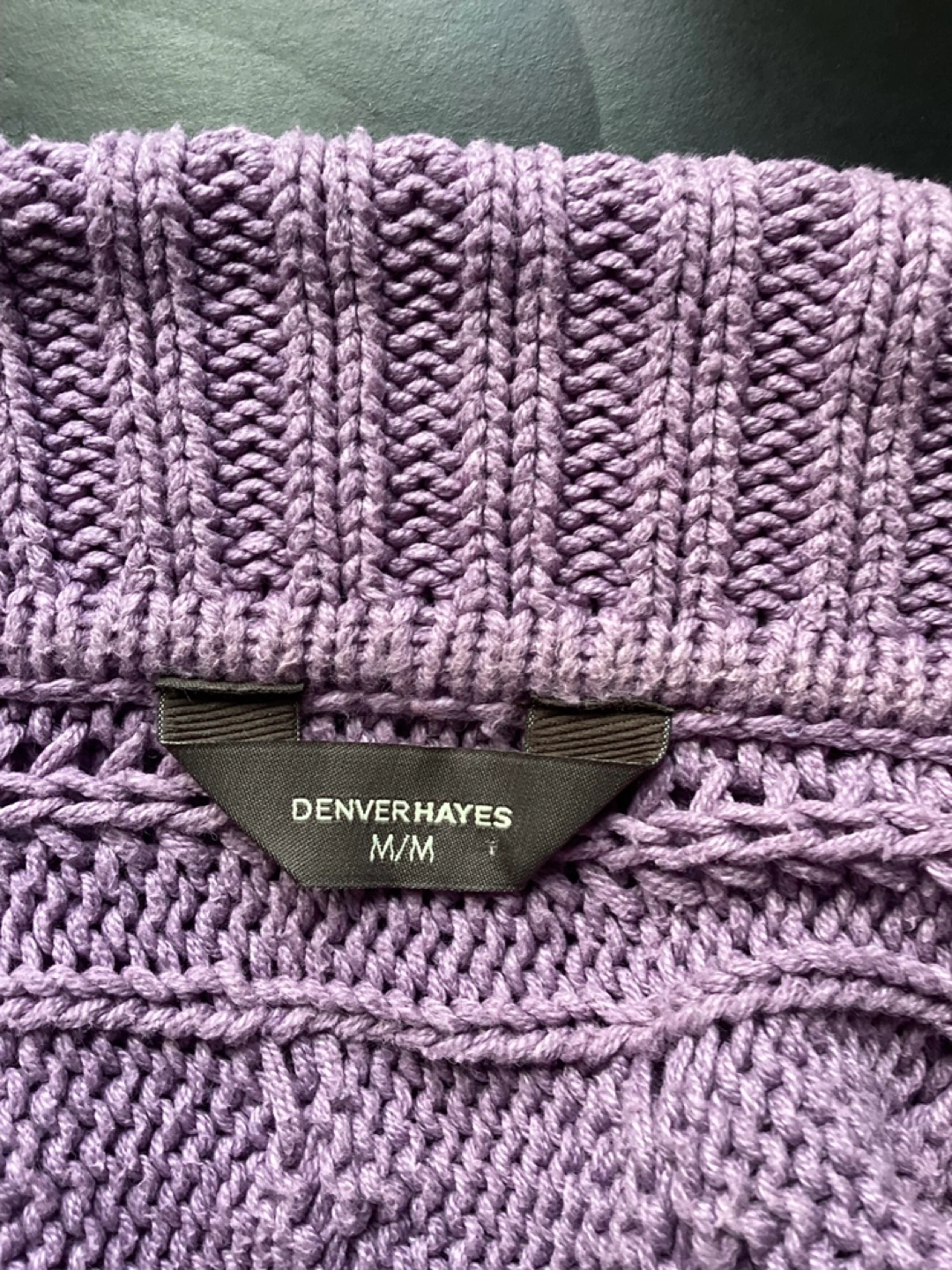 Denver Hayes Cotton Acrylic Sweater, minor signs of wear, Size Medium, $10 or best offer. Chest 35” Bottom width 30 1/2” Centre back 27 1/2” All measurements are before stretching.